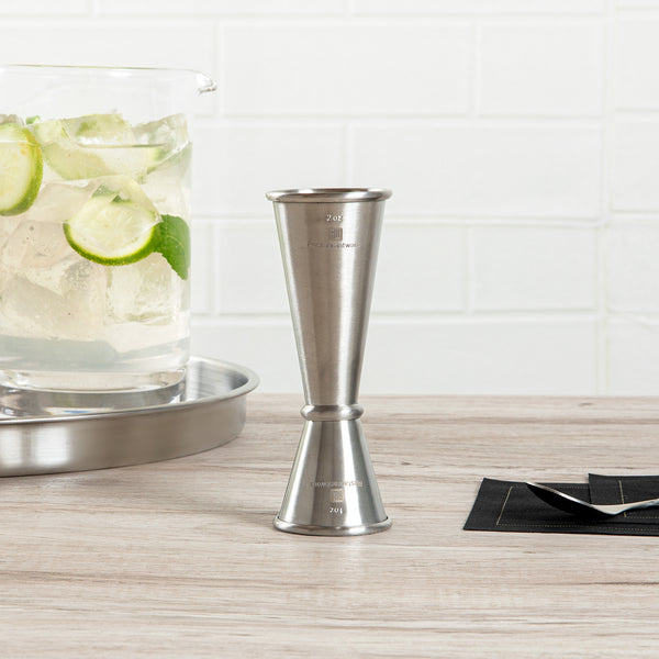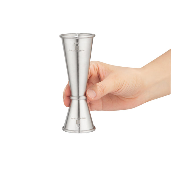 - Double-sided design conveniently measures 1 or 2 ounces of liquid