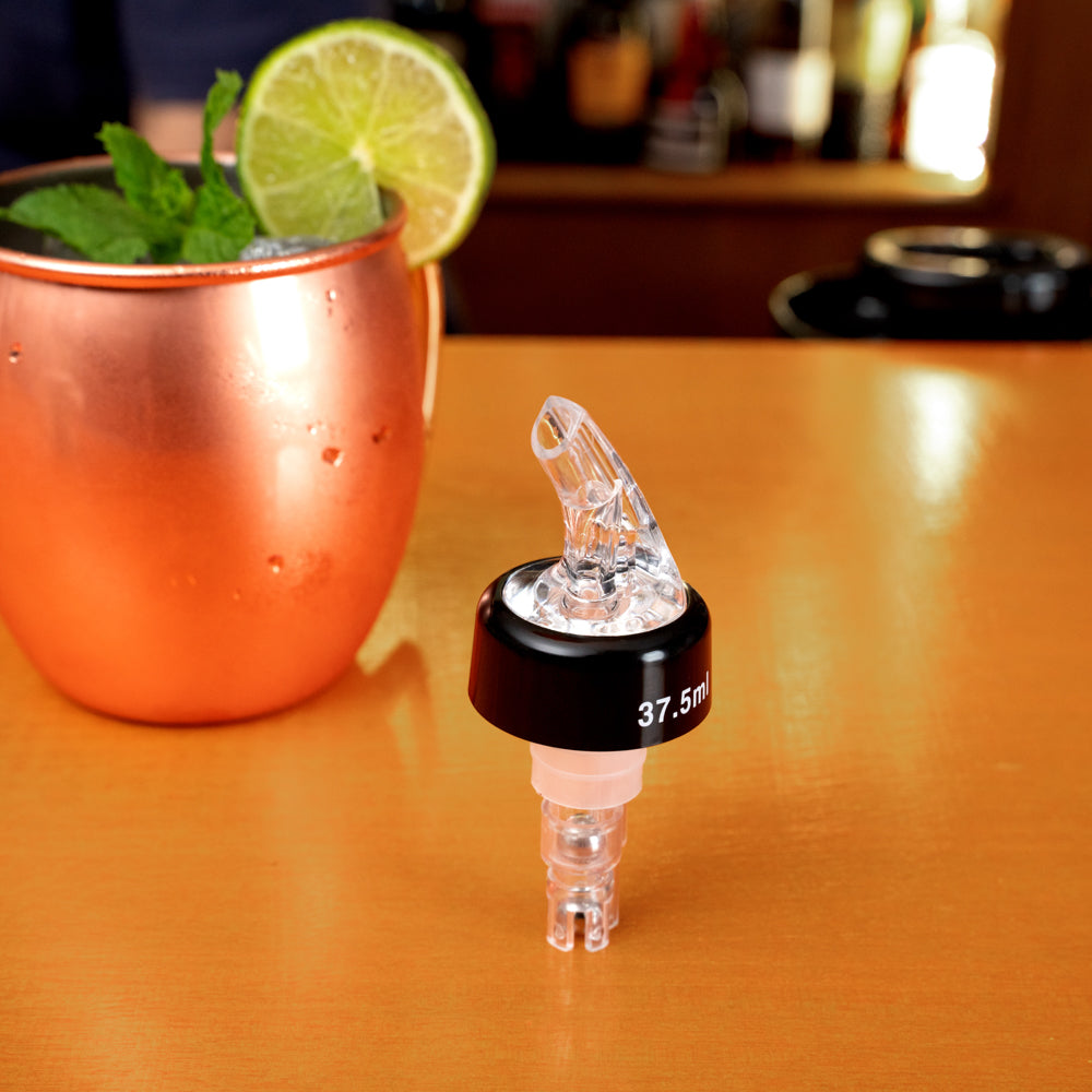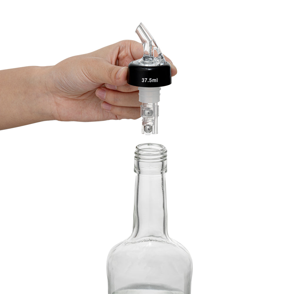 Serve shots in a mess-free manner using our Bar Lux 1-ounce Clear Plastic Measured Liquor Pourers. Crafted with a clear spout and tight-fitting black collar, these liquor pour spouts are ideal for preventing spills while serving customers at your bar or hotel. These alcohol pourers include ball bearings to expertly pour your desired liquors. The clear tail of these shot pourers provides a unique view of alcohol while pouring. These liquor pour spouts are made with high-quality plastic that is durable and crack-resistant to withstand frequent use at your foodservice establishment. These alcohol pourers accurately measure and serve up to 1 ounce of your preferred liquor or drink mix. These shot pourers measure 1.38 inches in diameter by 3.74 inches in height. Sold in a 10 count box.