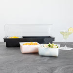 Optimize your foodservice operations with our Bar Lux 1-quart White Plastic Insert. Pair this condiment holder with its compatible caddy (SKU: RWT0486) to ensure all your condiments are easily accessible. Featuring a flat bottom design, this condiment container remains stable and keeps your garnishes intact. The versatile design of this caddy insert is perfect for holding cocktail garnishes behind the bar, making mixed drinks preparation a breeze. Fill this garnish holder with freshly sliced fruit and place them at the front of your buffet for quick self-service. Made from durable plastic, this garnish holder for bar is built to withstand the wear and tear of everyday use, providing your business with long-lasting service. This white plastic container is easy to wipe down, helping you maintain cleanliness standards in your establishment. With a capacity of 1 quart, this plastic container measures 5.75 inches in length by 5.5 inches in width by 2.75 inches in height. Sold in a 1 count box. Condiment caddy is available and sold separately.