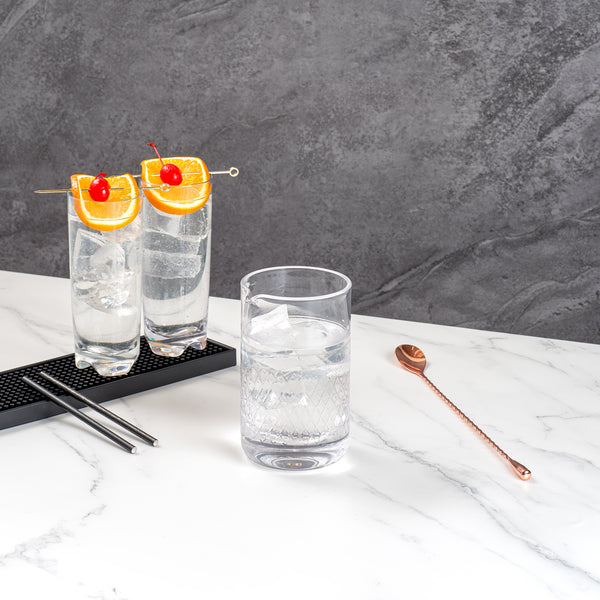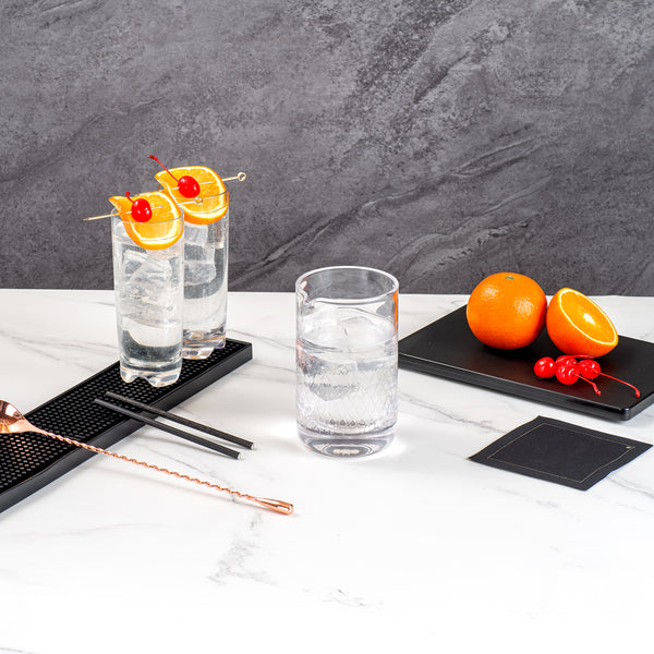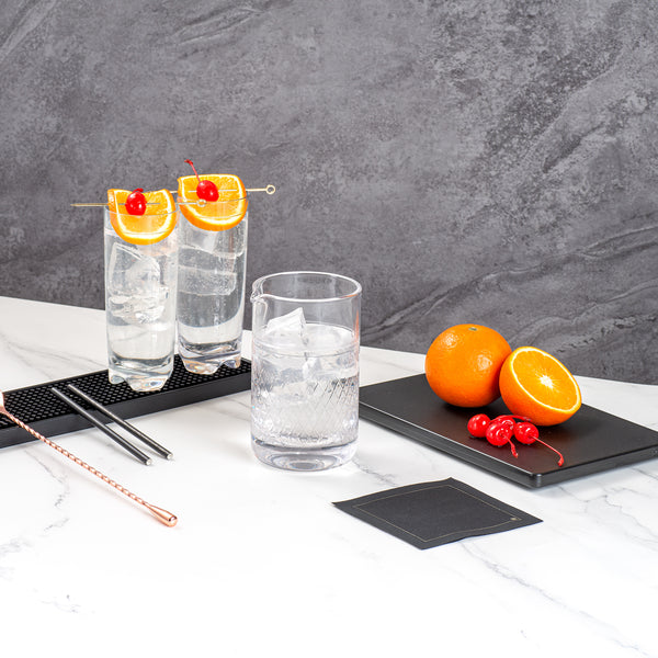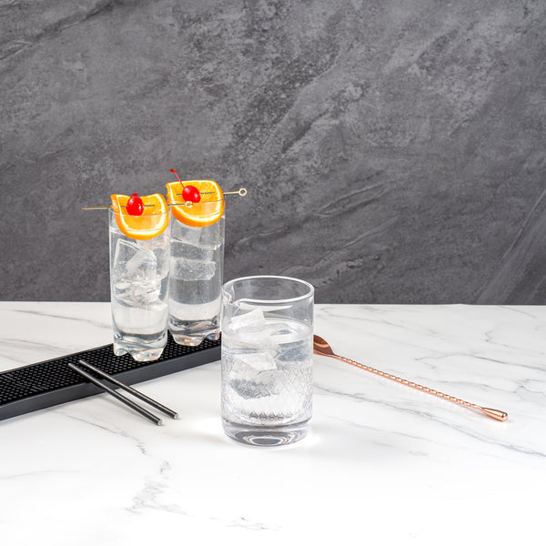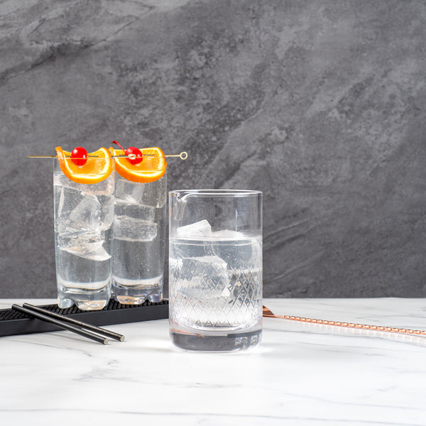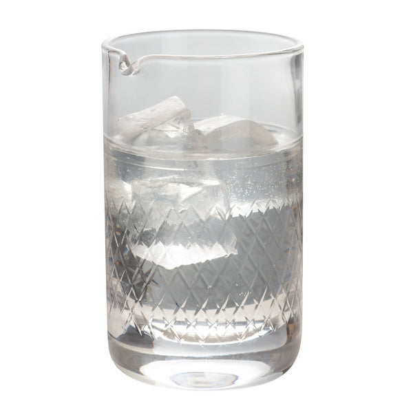 Elevate your mixology game with our Bar Lux 17-ounce Diamond Cut Pattern Hand-Blown Crystal Cocktail Mixing Glass. Showcasing an eye-catching diamond cut pattern, this cocktail mixing glass adds a refined touch to any high-end bar, restaurant, or catering event looking for a touch of sophistication. The built-in spout of this bartender mixing glass facilitates smooth pouring while providing ample space for stirring ice and blending whiskey cocktails, dry martinis, or old-fashioned. Manufactured from premium hand-blown crystal glass with an intricate pattern, this crystal mixing pitcher highlights the vivid hues of your unique drinks and is suited for lasting commercial use. This cocktail stirring glass is dishwasher-safe, making it an ideal, reusable addition to your bartending tools. With durable and sturdy construction, this cocktail pitcher prevents cracking and warping, ensuring it withstands heavy-duty, long-lasting usage. Each beverage mixing glass measures 3.75 inches long by 3.5 inches wide by 5.75 inches tall and can hold up to 17 ounces. Sold in a 1 count box.
