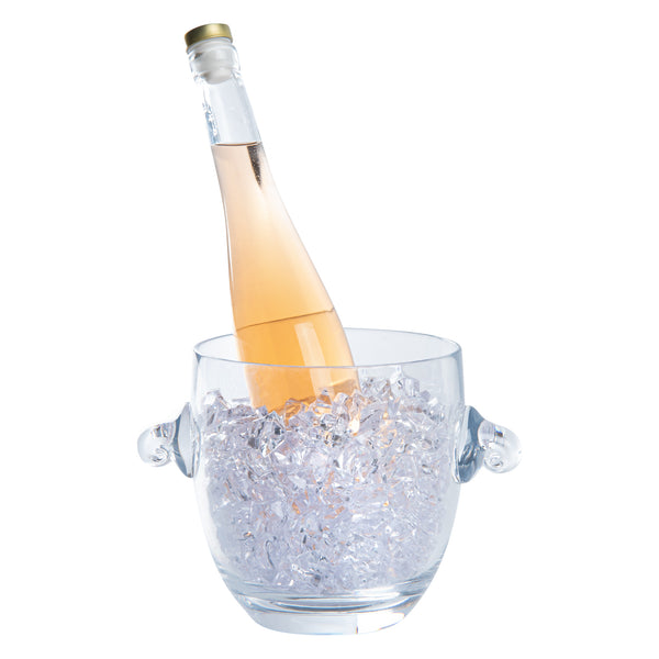 Add a touch of elegance to your bar service with our Bar Lux 2.1-quart Clear Plastic Ice / Champagne Bucket. Crafted from supreme polycarbonate plastic, this clear plastic ice bucket offers a crystal-like clarity to showcase your best bubbly and chilled beverages. The smooth rim of this plastic champagne bucket ensures a comfortable grip, while the sturdy base provides stability to prevent spills and tip-overs. This ice bucket is shatterproof, adding durability and safety to your service. Suitable for all kinds of beverages, this versatile plastic ice pail is a practical choice for any event or venue. Cleaning is a breeze as this ice bucket is dishwashable, saving you time and effort. With a capacity of 2.1 quarts, this bucket can easily hold ample amounts of ice or champagne. Measuring 8.75 inches in length by 6 inches in width by 6.25 inches in height, this chill ice bucket is just the right size for your bar or tabletop. Sold in a single count box.