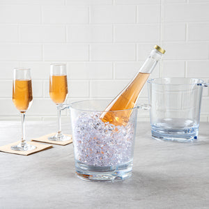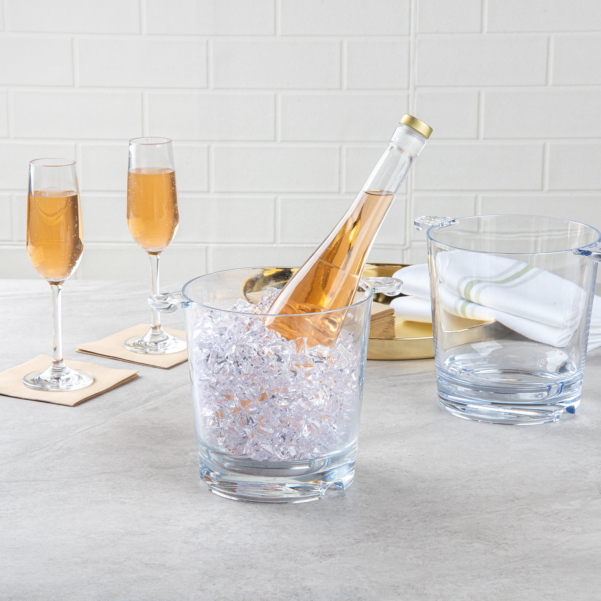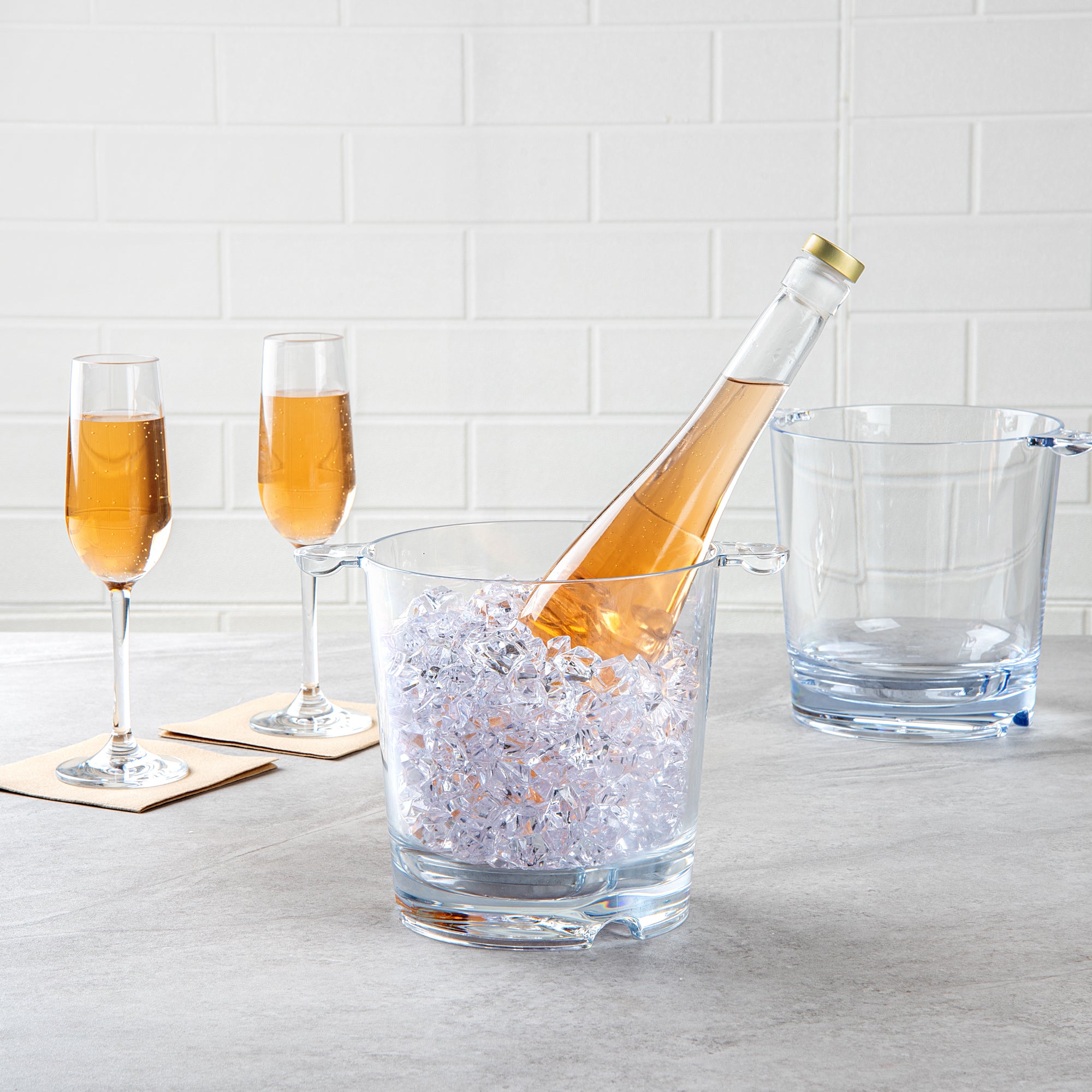 Elevate your beverage service with our Bar Lux 2.4-quart Clear Plastic Ice / Champagne Bucket. Crafted from durable polycarbonate plastic, this clear plastic ice bucket boasts a smooth rim for comfortable handling and a sturdy base for stability. Designed to withstand all kinds of beverages, this plastic ice pail can effortlessly accommodate your ice and champagne needs without cracking under pressure. The clear glass-like appearance of this champagne bucket adds an elegant touch, while the shatterproof design ensures longevity in high-traffic environments. You can easily maintain its pristine condition, as this clear plastic champagne bucket is dishwashable for a seamless cleaning. With a generous capacity of 2.4 quarts, this ice bucket measures 9 inches in length by 6.5 inches in width by 6.75 inches in height. Sold in a 1 count box.