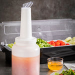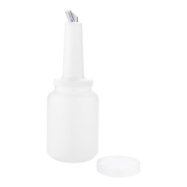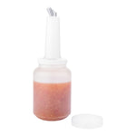 Keep prepared cocktail mixes, freshly squeezed juices, and other prepared ingredients organized and easily accessible in our Bar Lux Quick Pour Storage Container Bottle. Featuring an innovative two-in-one design, this unique juice storage bottle is equipped with two interchangeable lids that enable easy storing and pouring of all types of liquids. The dispensing lid is equipped with a built-in pour spout and easy-to-grip neck for controlled and precise pouring, while the storage lid creates a leak-resistant and airtight seal for maximum freshness. Ideal for use as a simple syrup container or a salad dressing container, this 2-quart plastic bottle features a clear, color-coded pour spout and twist-on lid for efficient storage and easy identification. Each of these handy simple syrup bottles has a total capacity of 2 quarts and is dishwasher-safe for quick and easy cleaning. This 2-qt quick pour storage container is sold in a 1 count box.