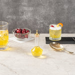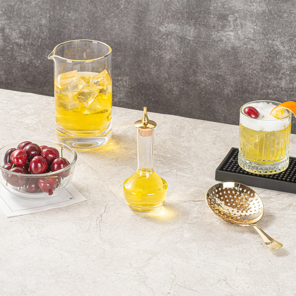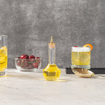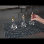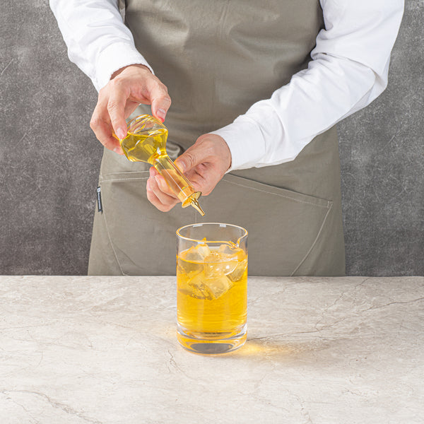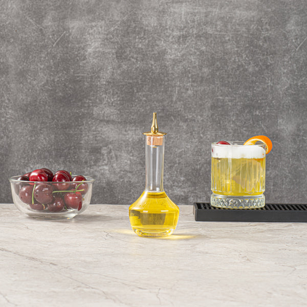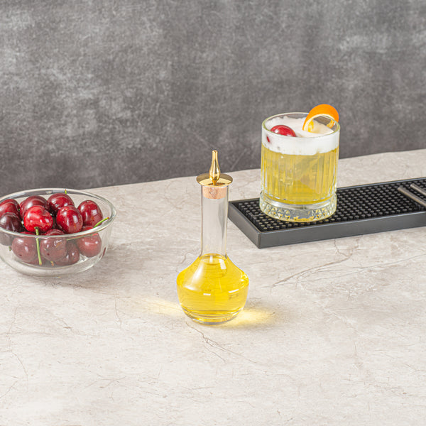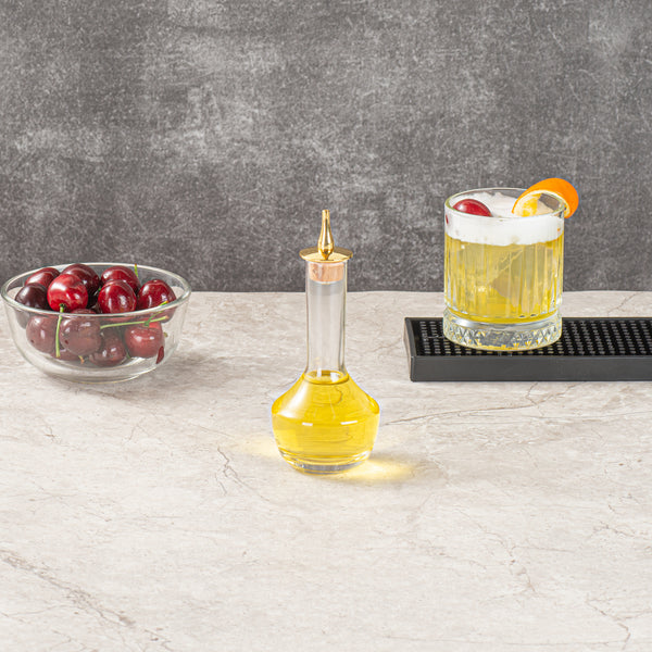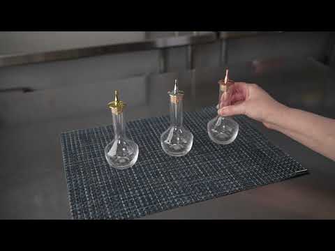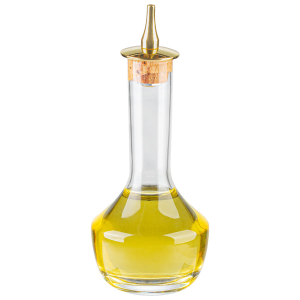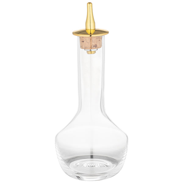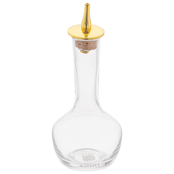 After you've mastered the art of the cocktail, it's time to make your own bitters. These Bar Lux Bitters Bottles with Gold-Plated Dashers are the perfect containers to stylishly house and dispense your homemade tonics and elixirs. These glass bitters bottles are outfitted with gold-plated dashers and sturdy cork stoppers that create a snug and leak-resistant seal to ensure mess-free and precision serving. Designed with an easy-to-grip rounded base and tapered neck, bartenders are sure to appreciate the ergonomic design of these 3.5 ounce bitters bottles. Plus, these bottles come with dasher tops specifically designed for consistent and hassle-free dispensing. Stock these Bar Lux Bitters Bottles with Gold-Plated Dashers alongside our collection of coordinating Bar Lux barware, including our gold-plated jiggers (RWT0272GP) and gold-plated shakers (RWT0300GP), to complete the look! Sold in a 1 count box.