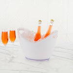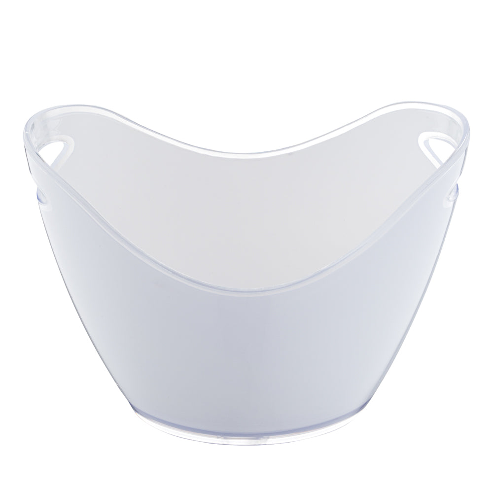 Enhance drink presentations at your foodservice establishment using our Bar Lux 7.4-quart Oval Frosted Champagne / Wine Bucket. This wine bucket has a frosted finish that adds a touch of elegance to chilled champagnes and wines. Constructed from high-quality plastic, this champagne bucket is break-resistant and can hold up to 7.4 quarts of frozen beverages. The oval shape and curved design of this drink bucket bring a unique look to wine presentations at your restaurant, hotel, or bar. To provide comfort while carrying bottles of champagne to guests, this wine bucket features built-in handles. The sturdy base of this champagne bucket offers stability on all surfaces. Measuring 13.75 inches in length by 9.75 inches in width and 10.5 inches in height, this wine bucket holds up to 7.4 quarts. Shipped in a 1 count box.