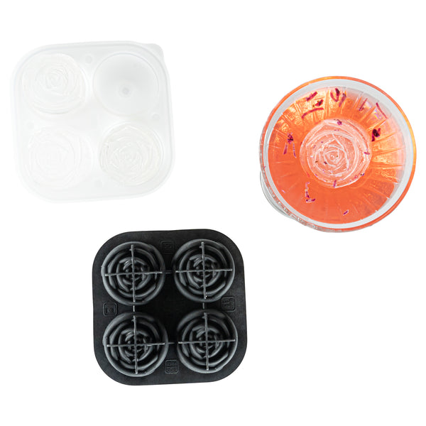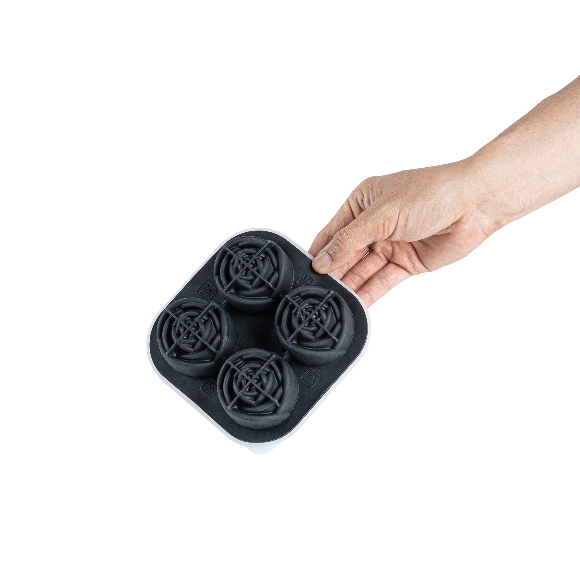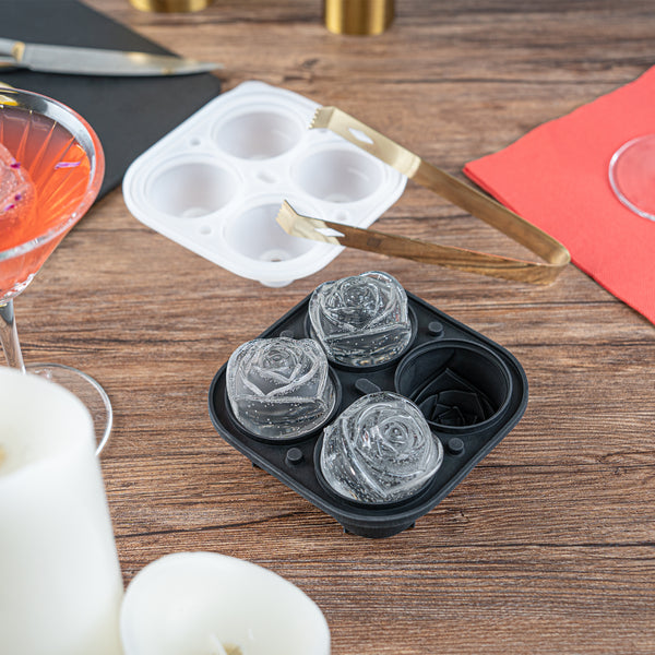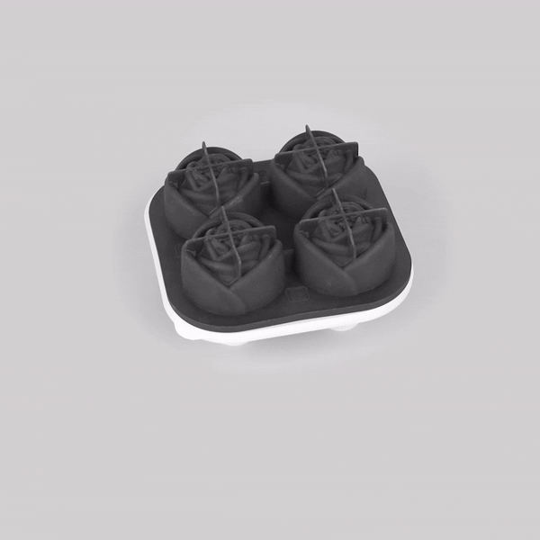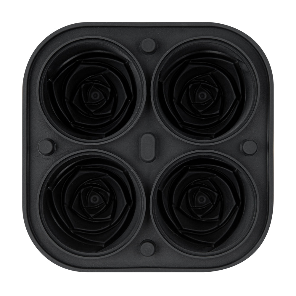BLACK SILICONE ICE MOLD - 2" ROSE, 4 COMPARTMENTS