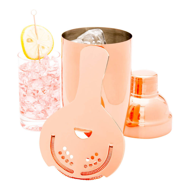 Whether you’re making a daiquiri or margarita, these stylish bartender tools instantly improve your showmanship and capture your guests’ eyes. Available in 4 different finishes: silver, black, gold, and copper.