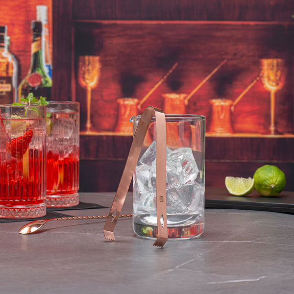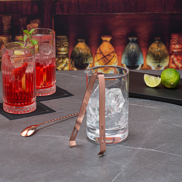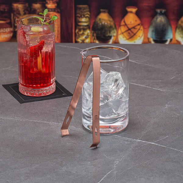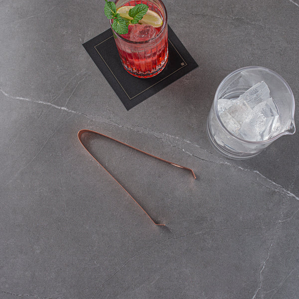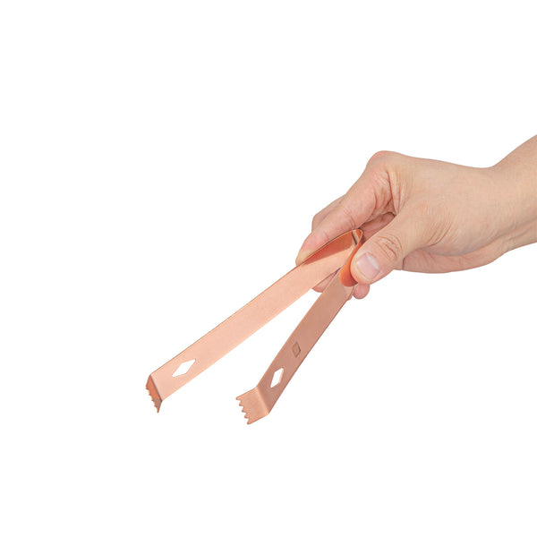 These premium copper-plated ice tongs are designed to easily and firmly serve ice spheres and ice cubes for impressive drinks and cocktails on the rocks. Constructed from stainless steel, these bar tongs are strong, durable, and easy to rinse and wipe clean. They can also be used to serve fruit, bread, and appetizers, or to pick up garnishes and other food items hands-free. These ice tongs' sleek copper-plated finish brings added sophistication to your restaurant, hotel, or catering company's barware. Each Bar Lux Copper-Plated Ice Tongs measure 6.3 inches in length and are shipped 1 per order.