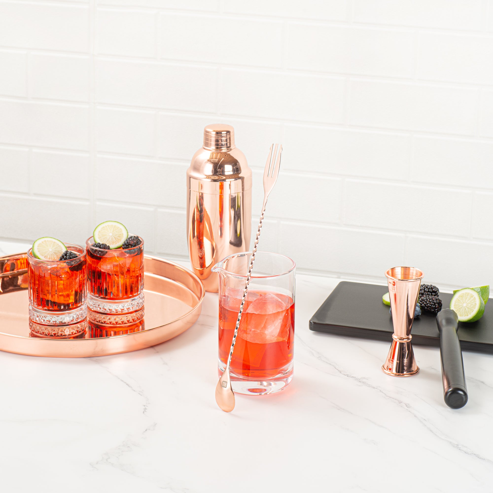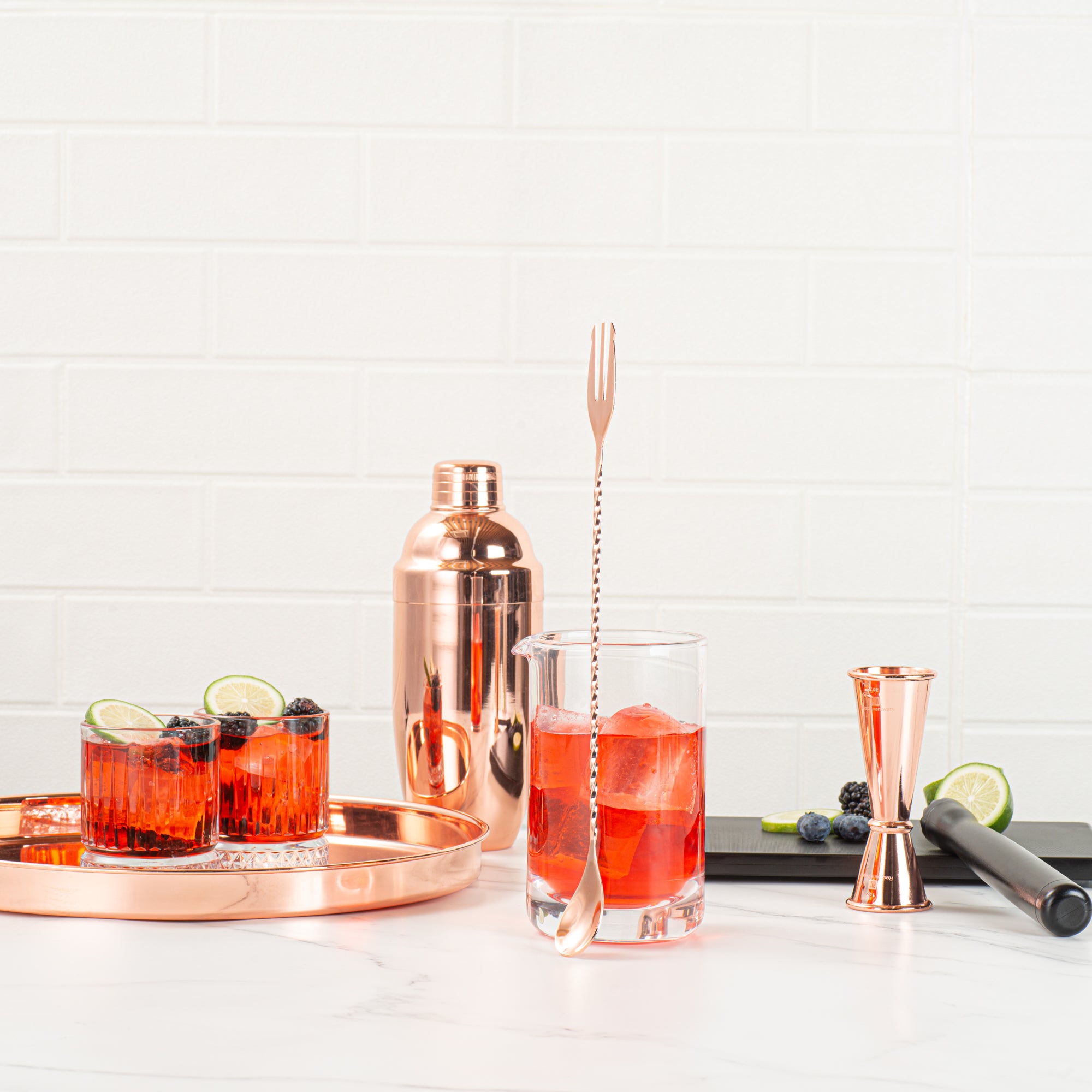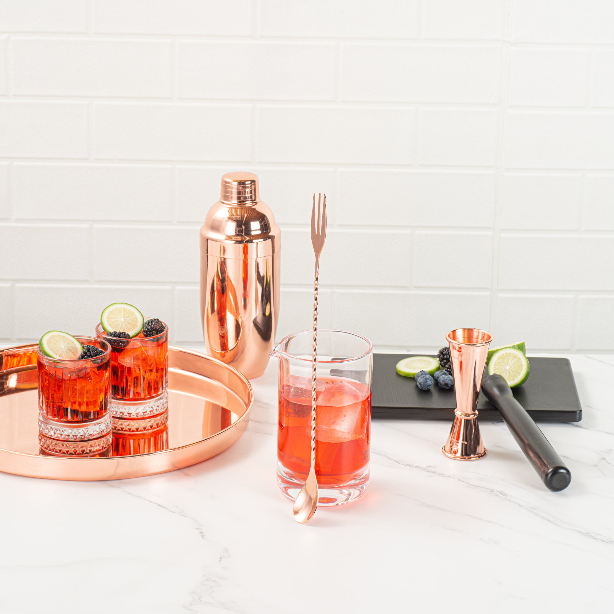 Whether you’re making a daiquiri or margarita, these stylish bartender tools instantly improve your showmanship and capture your guests’ eyes. Available in 4 different finishes: silver, black, gold, and copper.