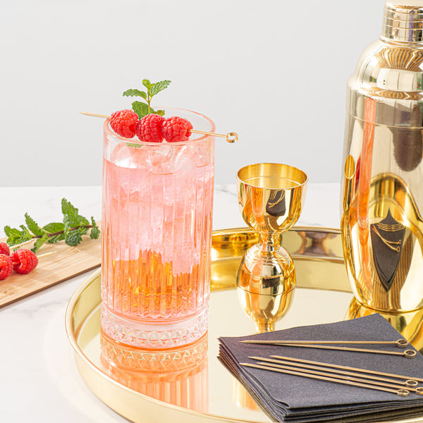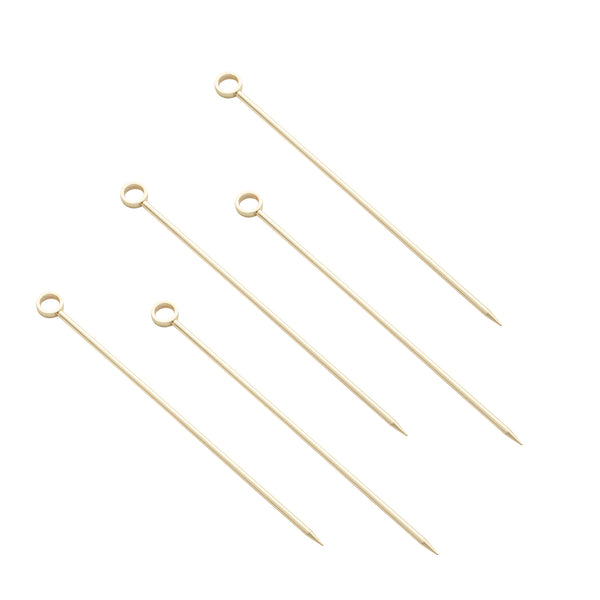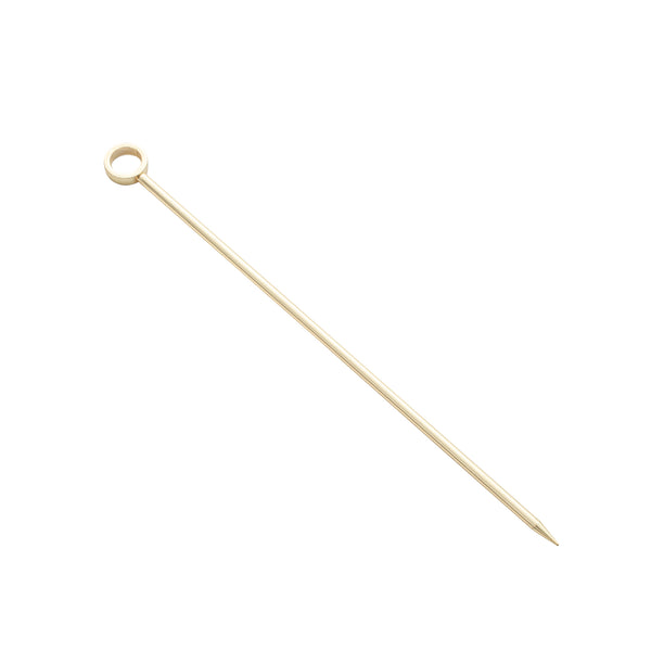 Hand out elegant samples with our Bar Lux Gold Plated Stainless Steel Cocktail Picks. Equipped with a circular handle, these drink skewers provide comfortable handling while customers stir their drinks. With a gold-plated finish, these stainless steel skewers complement your beverage presentations. The sharp end of these garnish picks effortlessly pierces through olives and cherries to top off your cocktails. Made from stainless steel, these metal cocktail picks are corrosion-resistant for everyday use at your bar, club, or restaurant. To preserve the stunning gold-plated finish, we recommend hand washing only. These gold cocktail picks measure 4.5 inches in length. Sold in a 10 count box.
