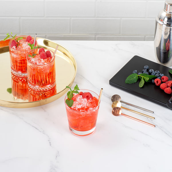 Stylishly sip and stir cocktails with these Bar Lux Gold-Plated Julep Spoon Straws! Provide these metal spoon straws alongside mint julep cups -- or use them to add a touch of luxury to hand-shaken rum daiquiris and other craft cocktail creations. Made from 18/8 grade stainless steel, these nature-friendly straws are washable, reusable, and incredibly long-lasting. Plus, their sleek gold-plated finish looks great at trendy bars, nightclubs, hotels, and catering companies. These 5 inch reusable stainless steel straws fit perfectly inside rocks glasses, lowball glasses, and julep cups. You will receive 2, 5-inch gold-plated reusable stainless steel straws in each box. We recommend handwashing these attention-grabbing julep spoon straws.