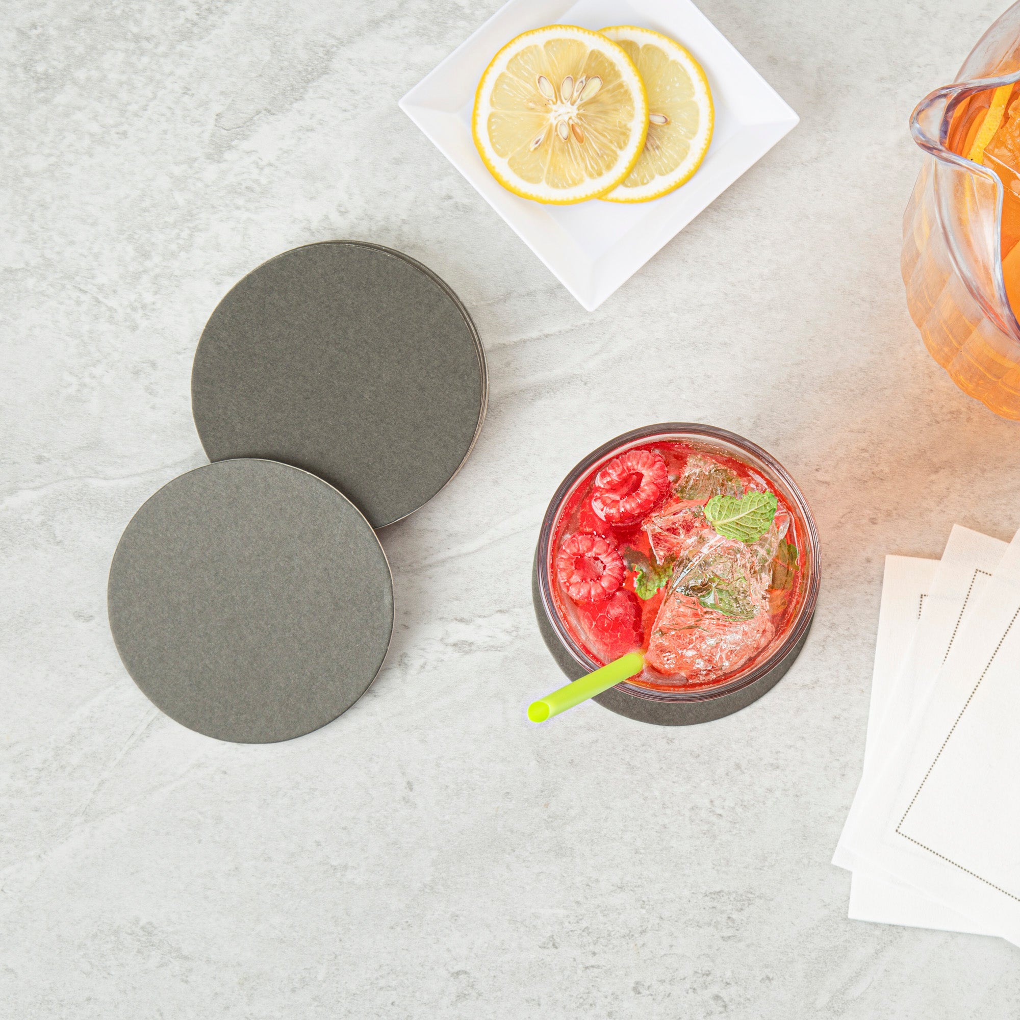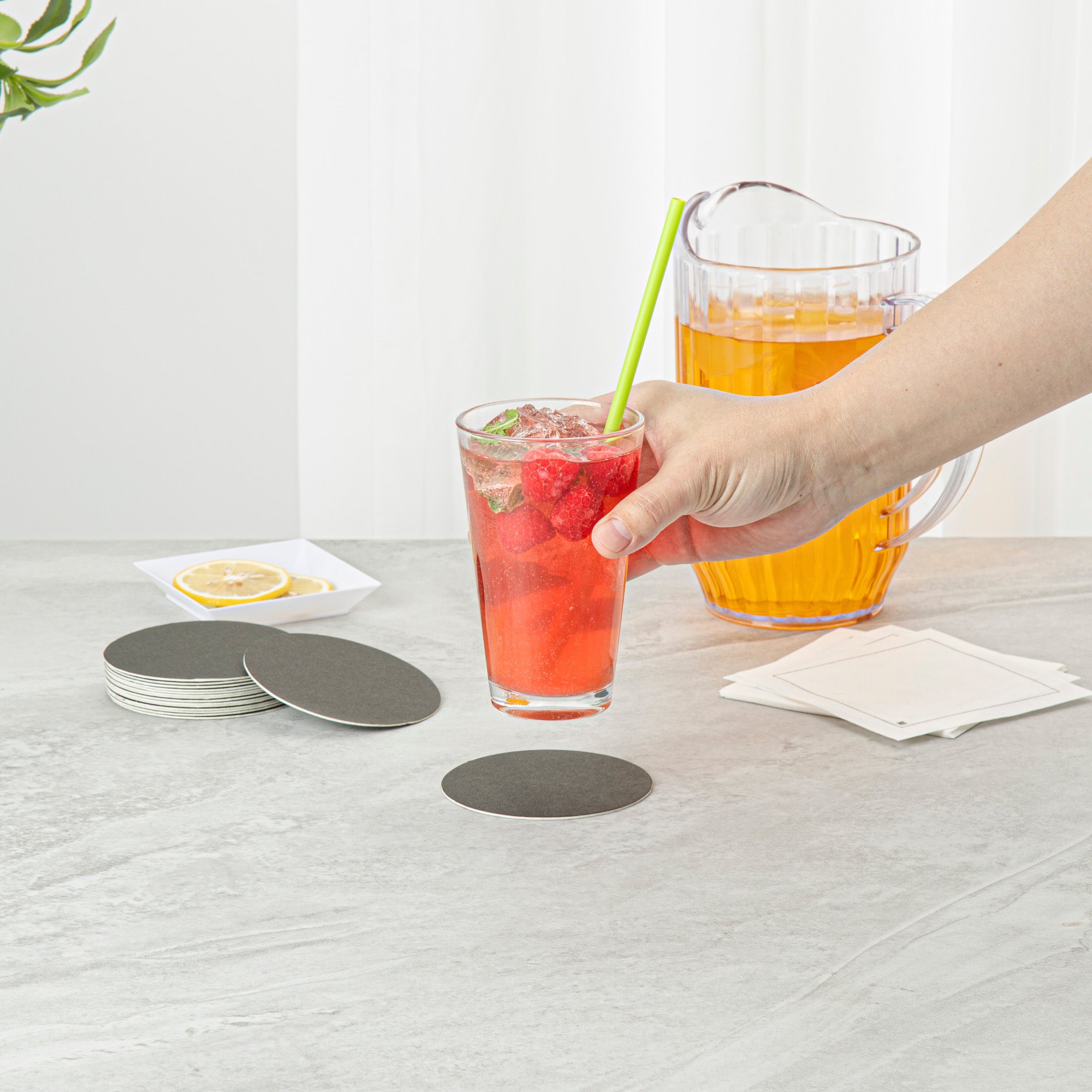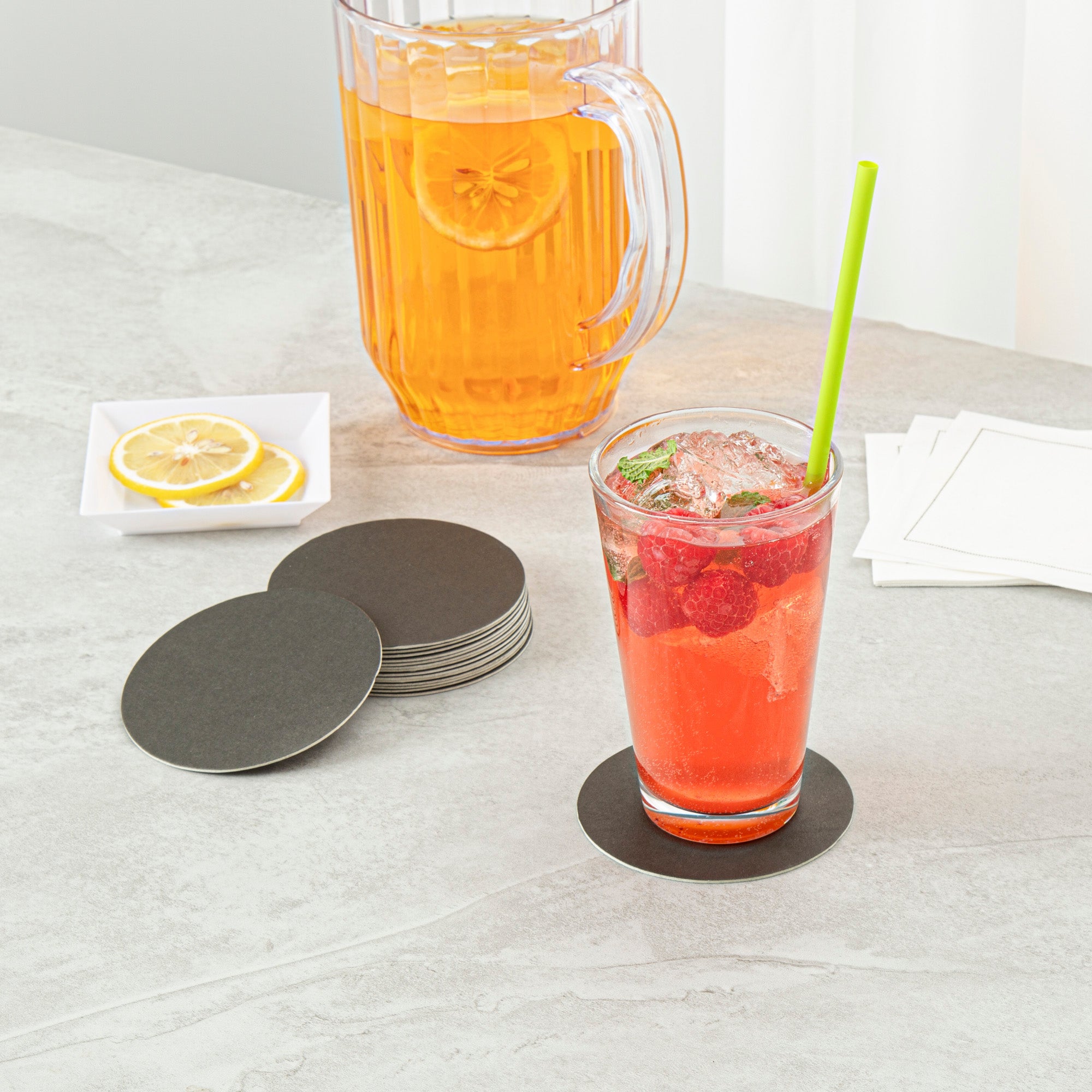 Elevate your tabletop presentation with versatile protection. Bar Lux Round Black Paper Coasters are crafted from premium paper, offering a disposable solution that shields surfaces from condensation and spills, enhancing both functionality and aesthetics. Designed with a high-density water-absorbent board, these absorbent paper coasters dry faster than ordinary options, ensuring superior performance in high-traffic environments. The coasters' tear-resistant design withstands frequent use, making them ideal disposable bar coasters for busy bars and lounges. Measuring 3.5 inches in diameter, they accommodate a wide range of glassware sizes, providing versatility for all your drink offerings. Additionally, the full-color printing option allows you to enhance branding on bar counters, creating a customized and cohesive look. Embrace efficiency and style with these reusable drink coasters that simplify cleanup while maintaining an elegant ambiance. Each order includes 1000 Bar Lux Round Black Paper Coasters.