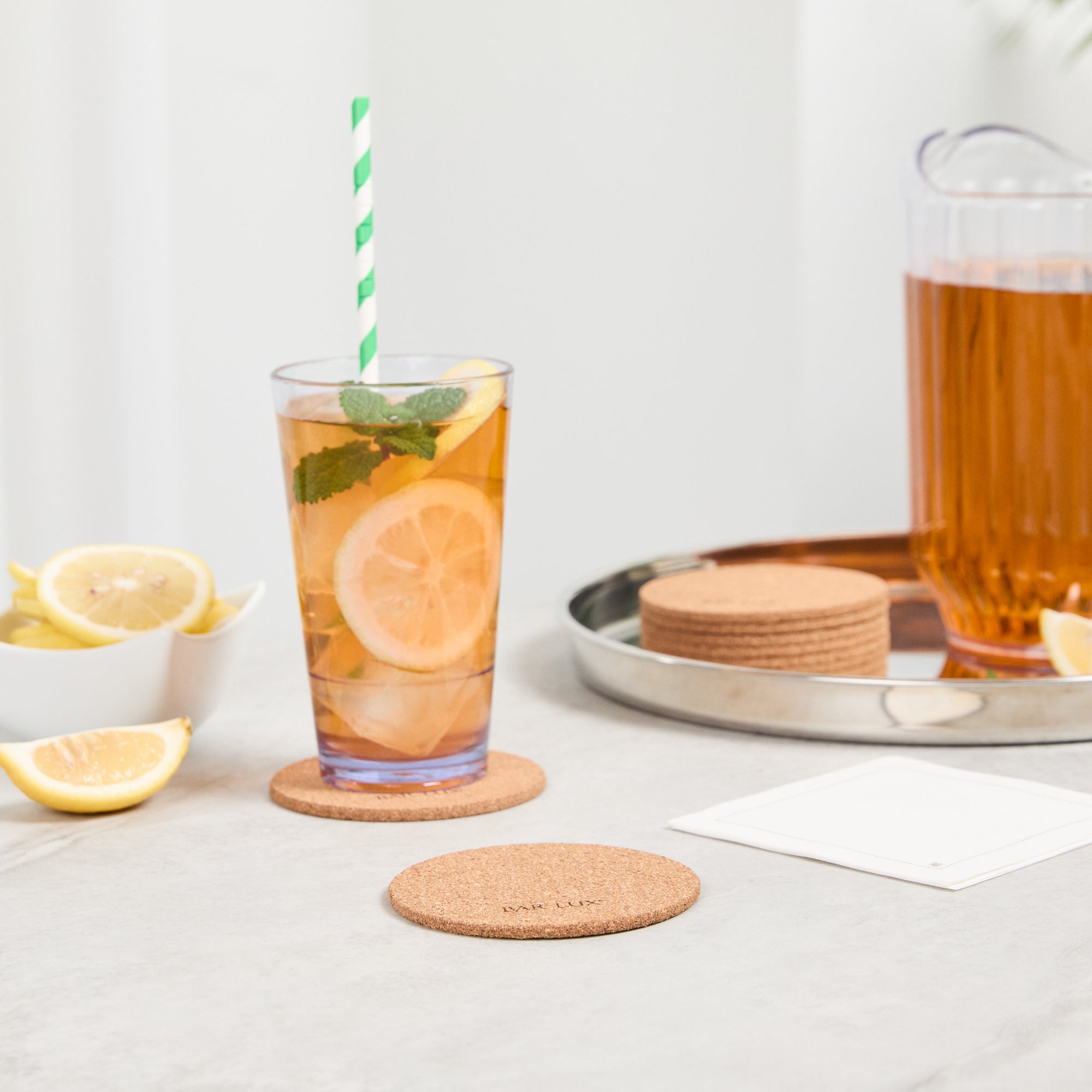 Enhance your brand’s presence with customizable round cork coasters. Bar Lux Customizable Round Cork Coasters feature a natural cork material, providing an eco-friendly solution for protecting surfaces from drink condensation. With a 3.5-inch diameter, these absorbent coasters accommodate a wide range of glassware sizes, ensuring your venue is equipped for any occasion. The lightweight design allows for easy handling, reducing setup times and boosting operational efficiency. These personalized coasters have an absorbent surface that safeguards tables from drink spills while enhancing brand visibility at events. A fast turnaround time ensures timely event preparation, making these coasters ideal for busy bars and restaurants. Add a rustic and elegant touch to your table settings with these natural cork coasters that are perfect for any foodservice setting. Each order includes 100 Bar Lux Customizable Round Cork Coasters.