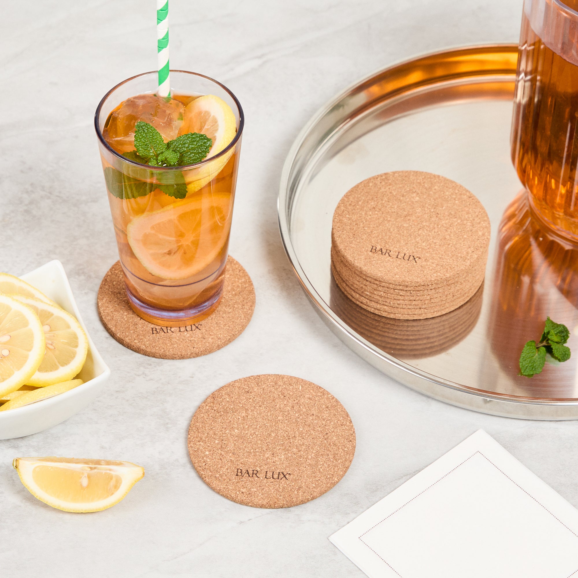 Enhance your brand’s presence with customizable round cork coasters. Bar Lux Customizable Round Cork Coasters feature a natural cork material, providing an eco-friendly solution for protecting surfaces from drink condensation. With a 3.5-inch diameter, these absorbent coasters accommodate a wide range of glassware sizes, ensuring your venue is equipped for any occasion. The lightweight design allows for easy handling, reducing setup times and boosting operational efficiency. These personalized coasters have an absorbent surface that safeguards tables from drink spills while enhancing brand visibility at events. A fast turnaround time ensures timely event preparation, making these coasters ideal for busy bars and restaurants. Add a rustic and elegant touch to your table settings with these natural cork coasters that are perfect for any foodservice setting. Each order includes 20 Bar Lux Customizable Round Cork Coasters.