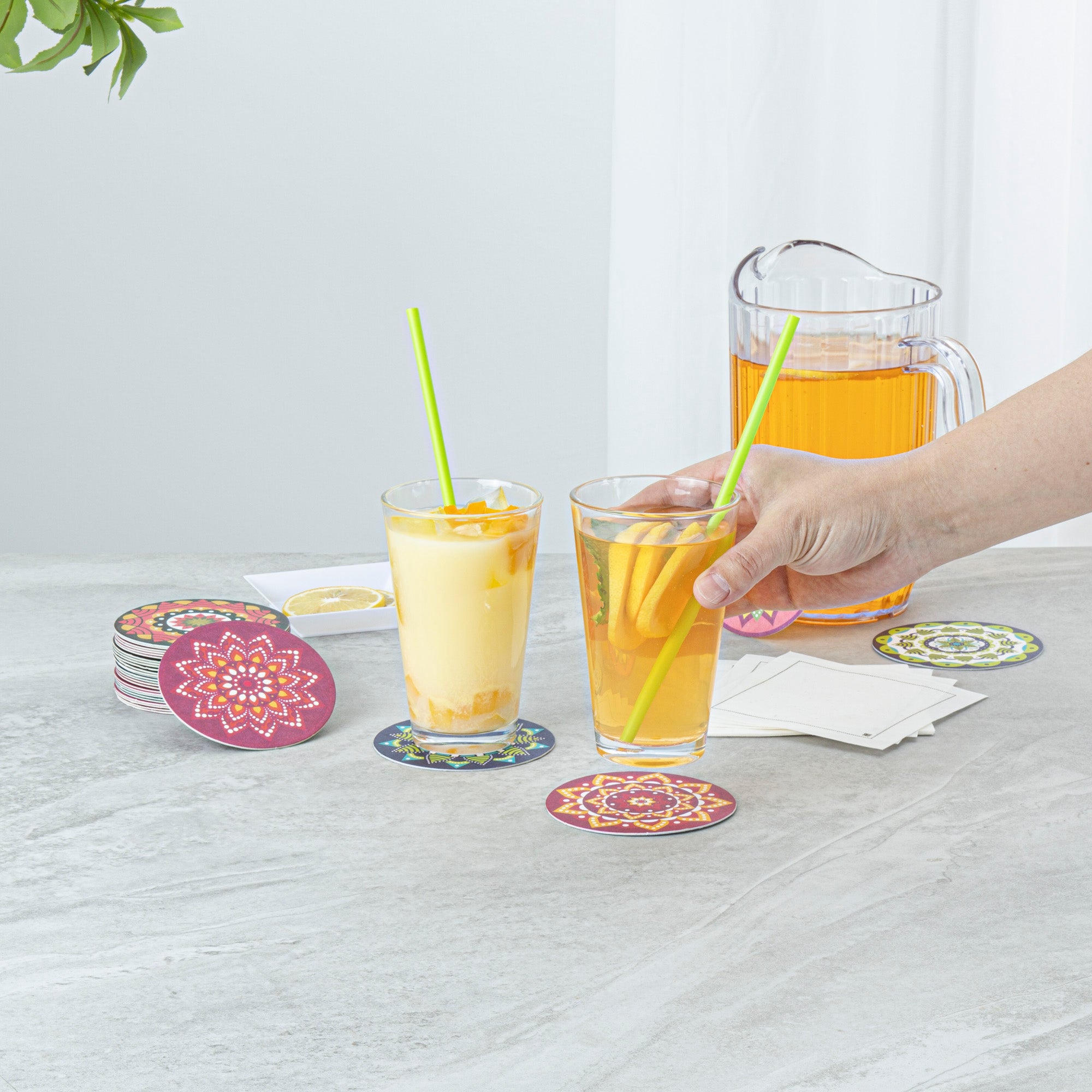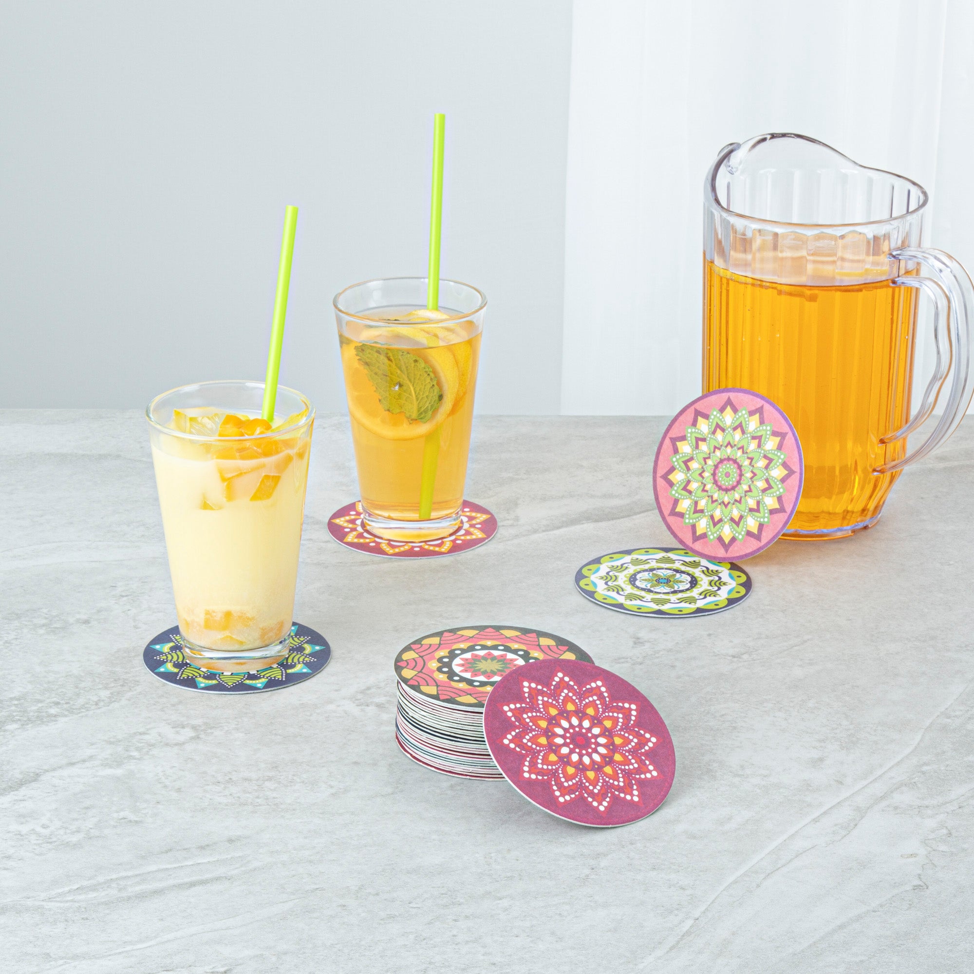 Elevate your beverage service with decorative flair and functional design. Bar Lux Super Absorbent Paper Bar Coasters feature assorted floral designs that enhance table aesthetics, adding a decorative touch to any setting. Crafted from high-density paper, these coasters absorb water quickly, reducing spills and protecting surfaces from condensation. With a reusable design that air-dries for repeated use, these coasters provide a cost-effective solution for busy bars and restaurants. The 3.5-inch diameter accommodates most glassware sizes, offering versatility across various drink types. Full-color printing allows for enhanced branding and visibility, making these drink coasters 3.5 inch an excellent choice for reinforcing your brand's image. The pulpboard coasters' absorbent construction ensures your tabletops stay dry and clean, maintaining a pristine dining environment. Ideal for high-volume establishments, these coasters come in bulk packaging to reduce the frequency of reordering. Each order includes 480 Bar Lux Super Absorbent Paper Bar Coasters.