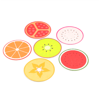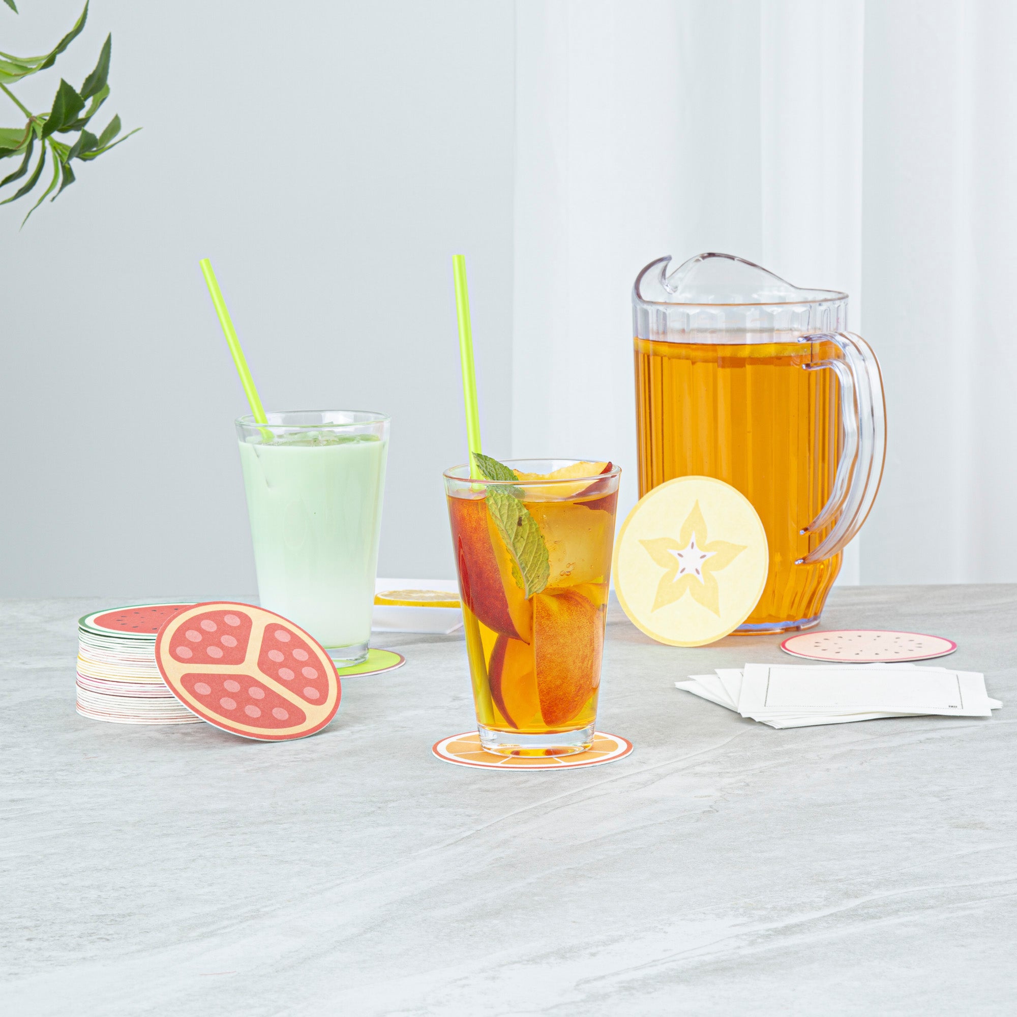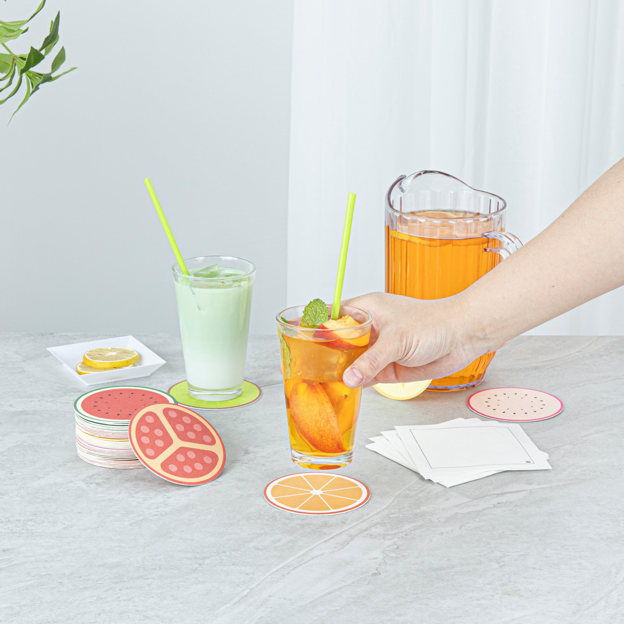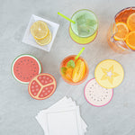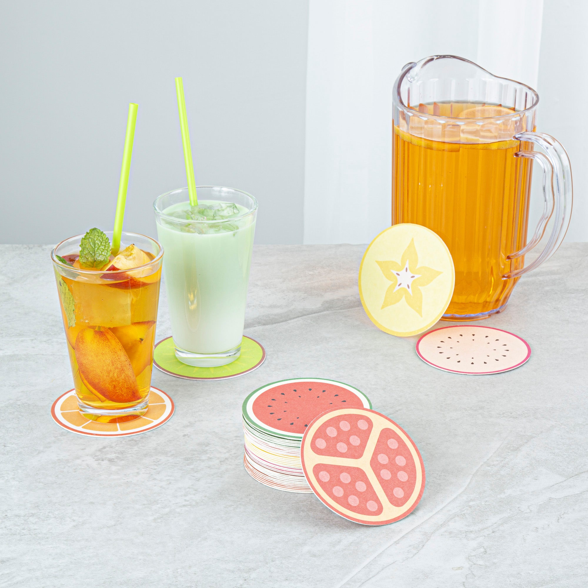 ROUND FRUIT PAPER COASTER - 6 ASSORTED DESIGNS - 3 1/2"