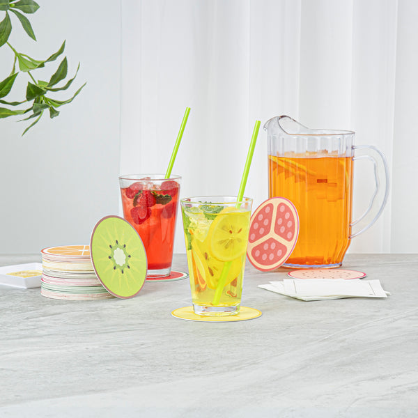 ROUND FRUIT PAPER COASTER - 6 ASSORTED DESIGNS - 4"