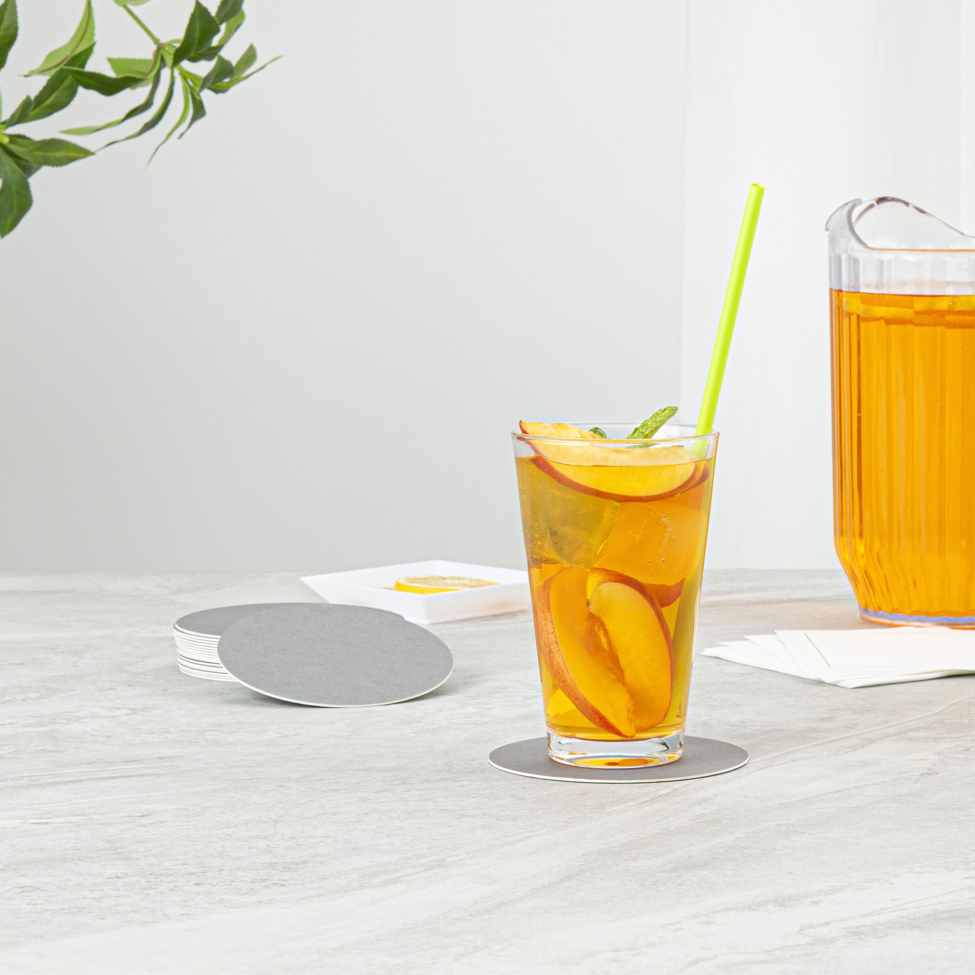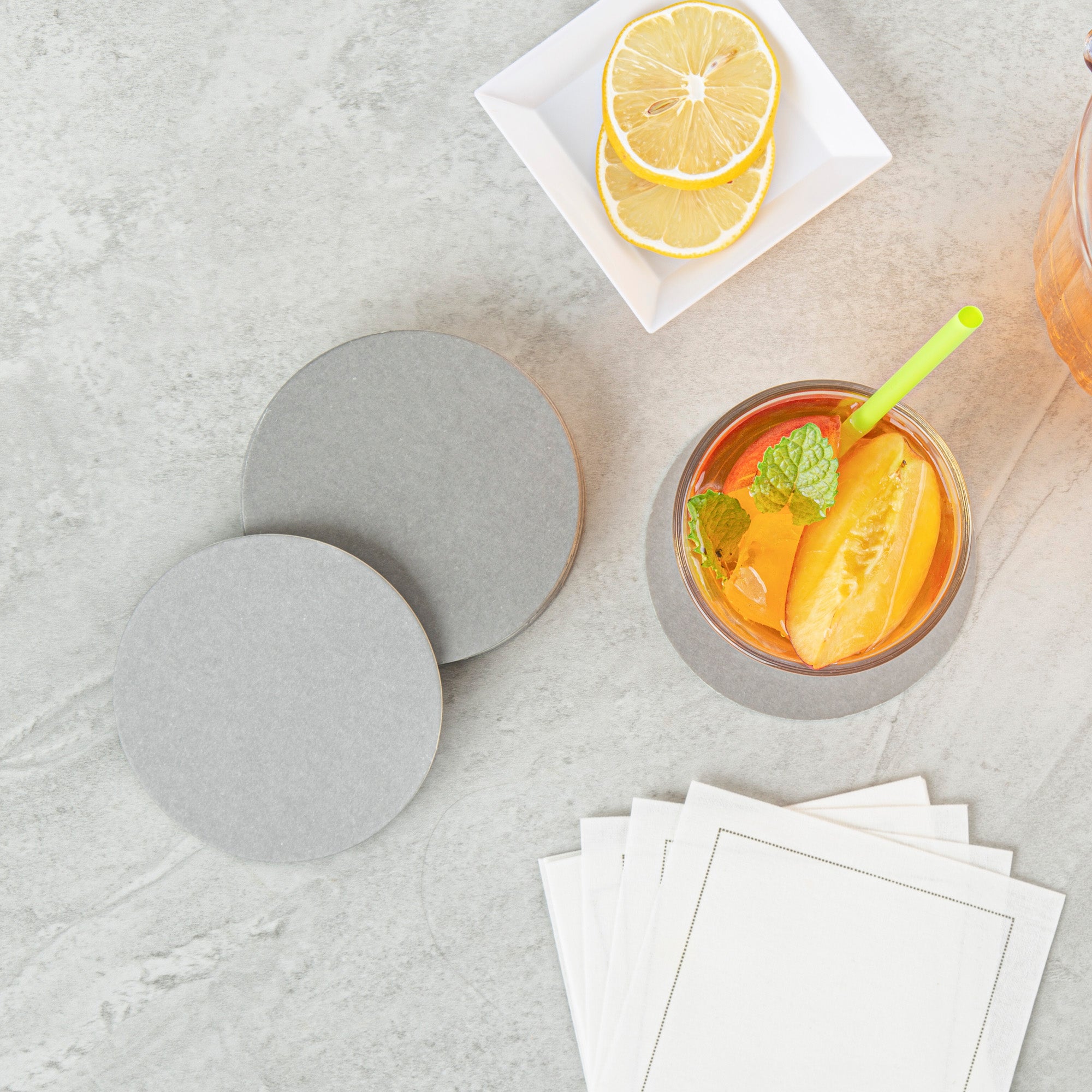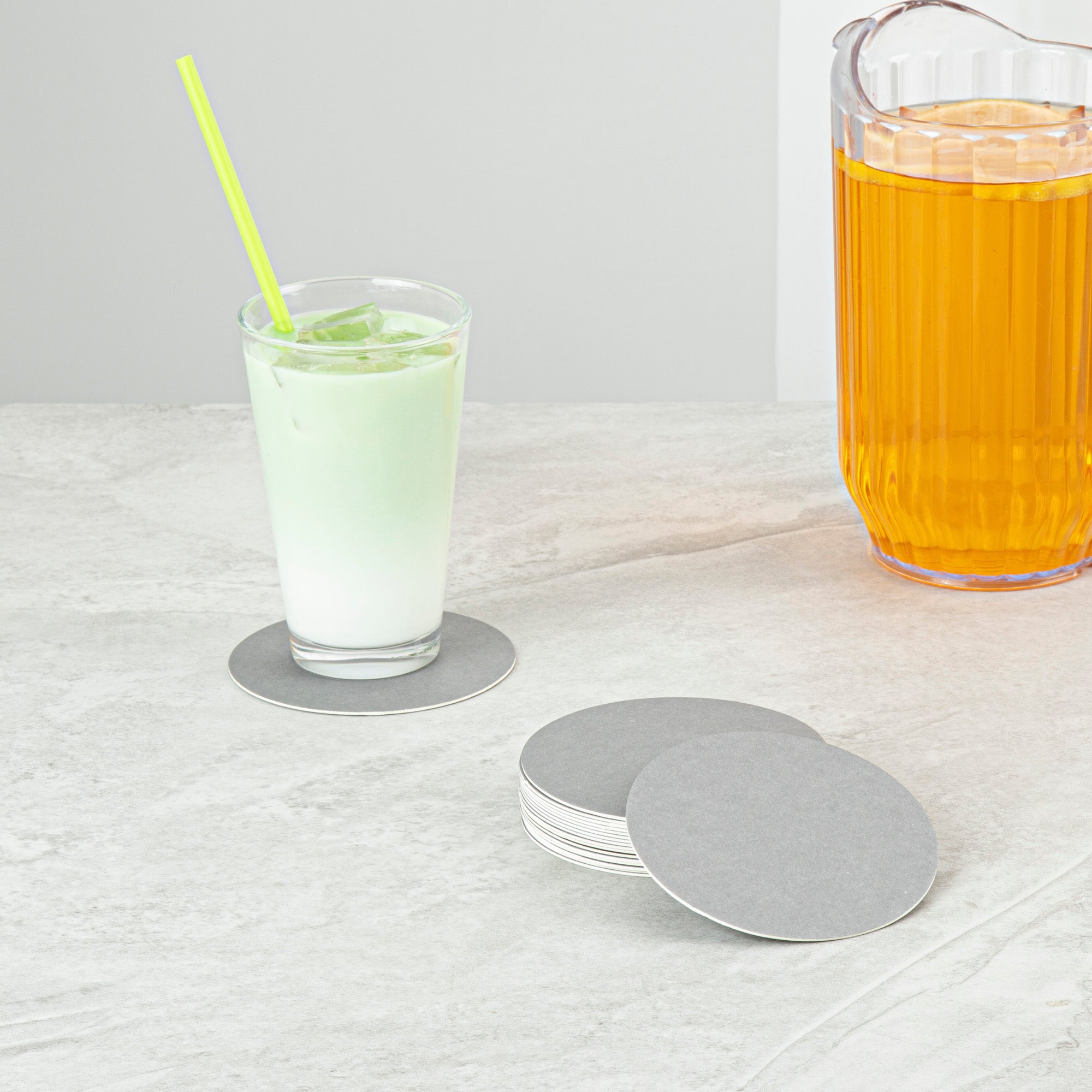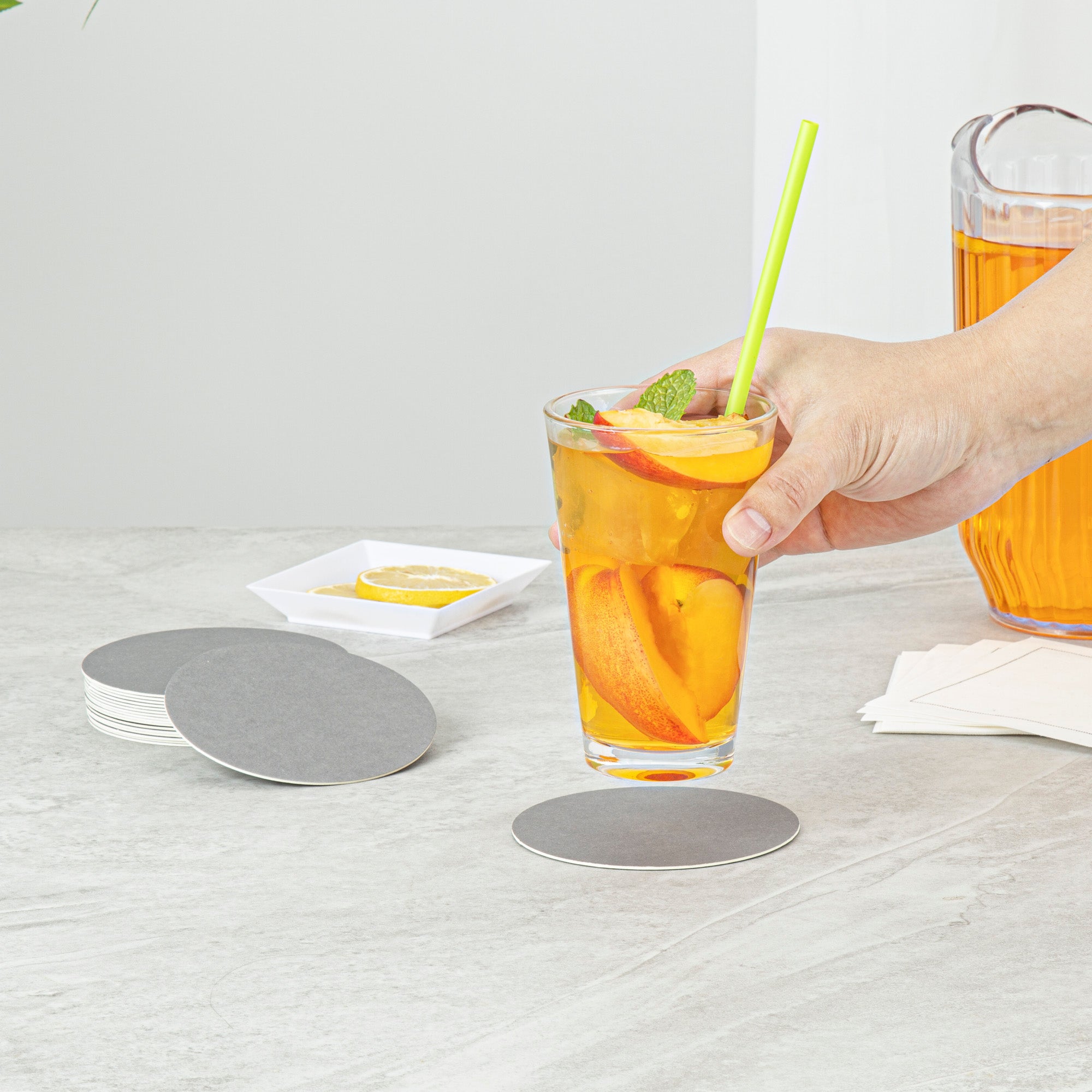 Enhance beverage service with versatile, reusable drink coasters. The Bar Lux Super Absorbent Drink Coaster features a high-density absorbent board that provides superior drying capabilities, allowing each 4-inch round coaster to be quickly reused, reducing waste and cost for busy bars and cafés. With full-color printing, these absorbent coasters offer a unique branding opportunity to showcase logos or designs, making them ideal for elevating the visual appeal of your establishment. Their tear-resistant construction holds up to both hot and cold drinks, ensuring reliability in all drink service scenarios. Made from premium paper, these pulpboard coasters offer an eco-friendly option that protects surfaces from condensation and spills while complementing any decor with their sleek gray color. Invest in these essential tabletop accessories to improve operational efficiency and customer satisfaction. Each order includes 1000 Bar Lux Super Absorbent Drink Coasters.