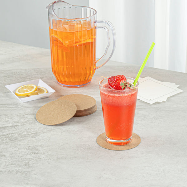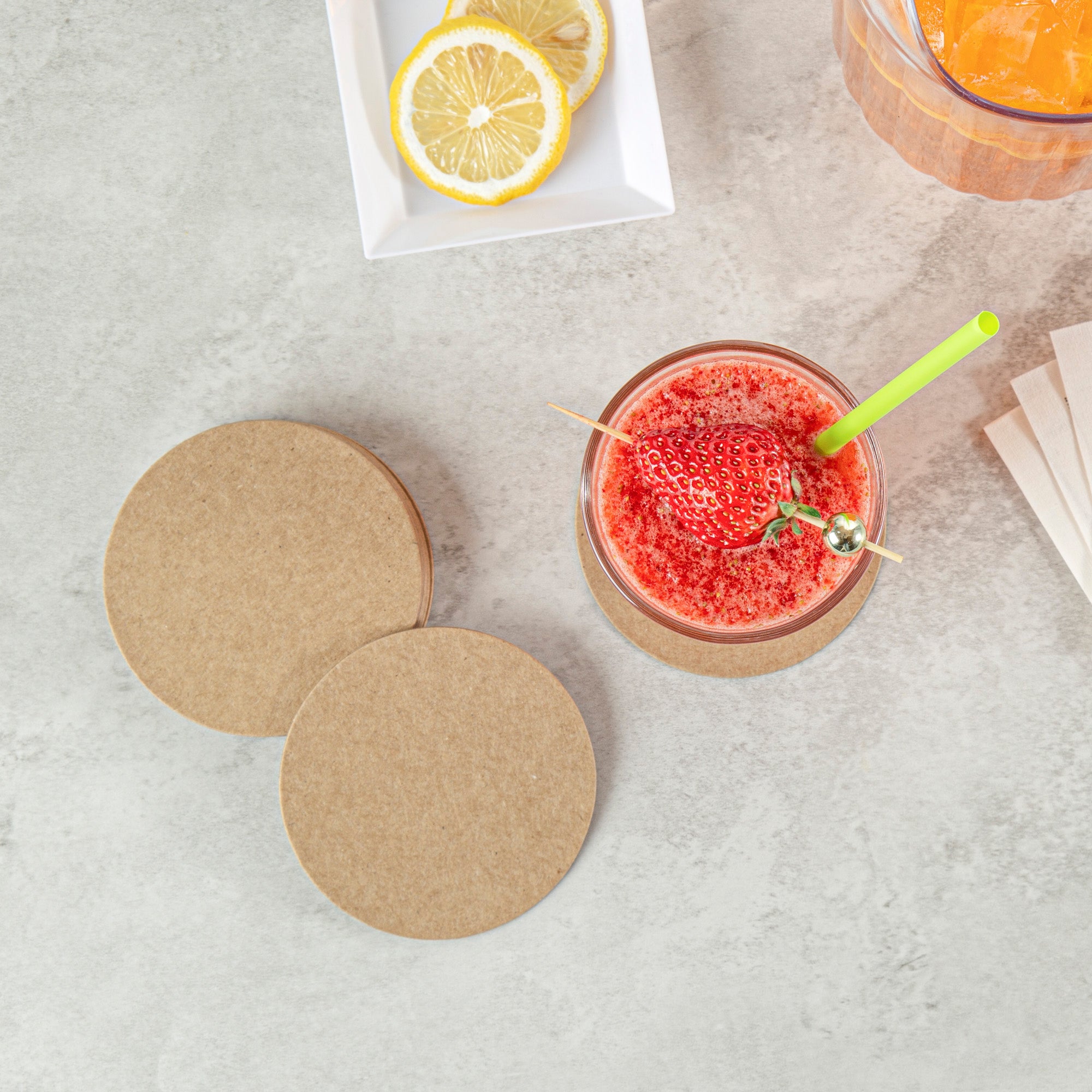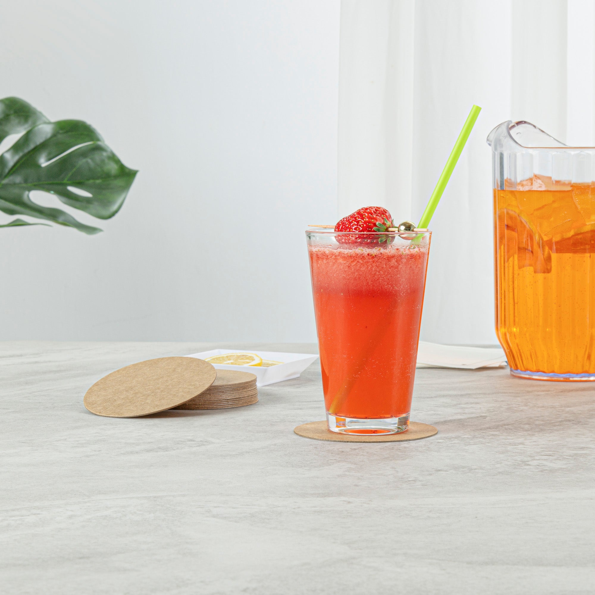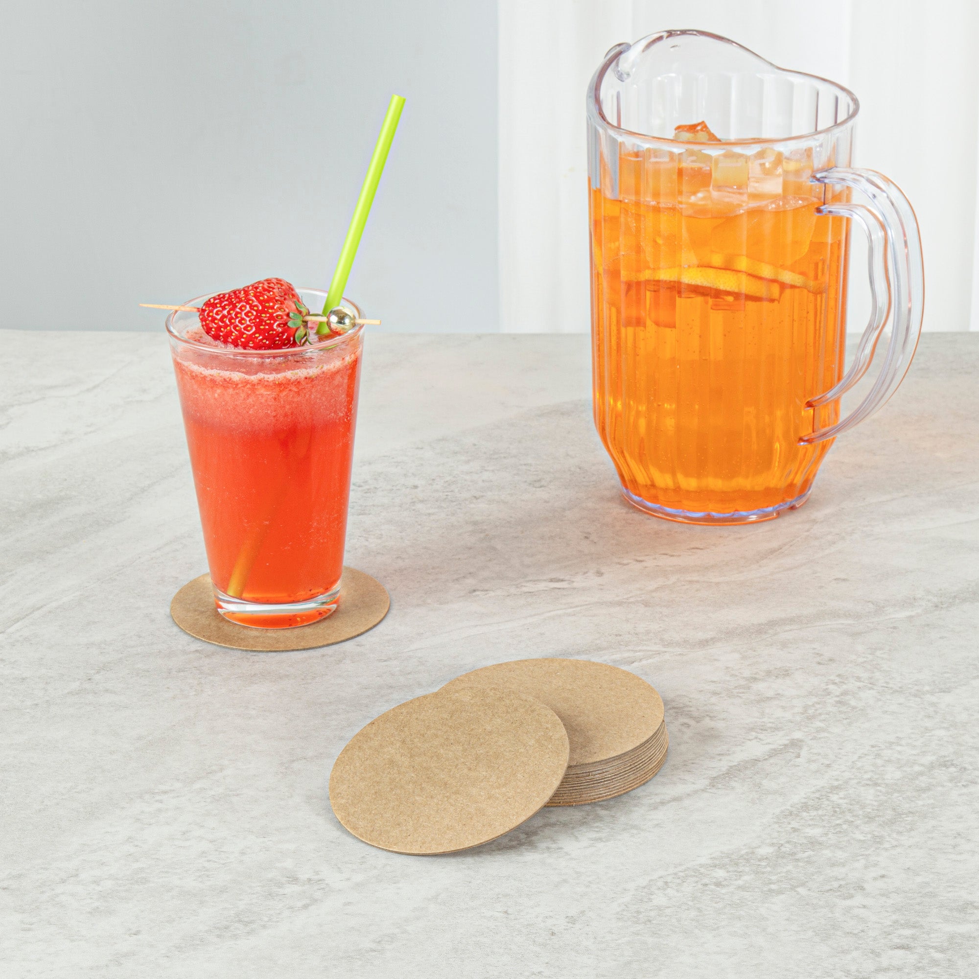 Quickly absorb moisture and keep surfaces spotless. The Bar Lux Super Absorbency Drink Coaster, crafted from high-density water-absorbent board, ensures condensation doesn't damage tables while adding elegance to beverage service with a 3.5-inch diameter. This kraft coaster's reusable design not only reduces waste but also cuts down on replacement costs, making it a sustainable choice for eco-conscious establishments. Its tear-resistant structure is engineered to withstand both hot and cold beverages, enhancing durability in busy settings. Made from premium kraft paper, these coasters seamlessly blend with rustic decor themes, enhancing the dining experience while being disposable for easy cleanup. Ideal for bars, restaurants, and catering events, these absorbent coasters provide a practical solution for maintaining clean surfaces and efficient operations. Opt for these versatile coasters to enhance your service with style and functionality. Each order includes 1000 Bar Lux Super Absorbency Drink Coasters.