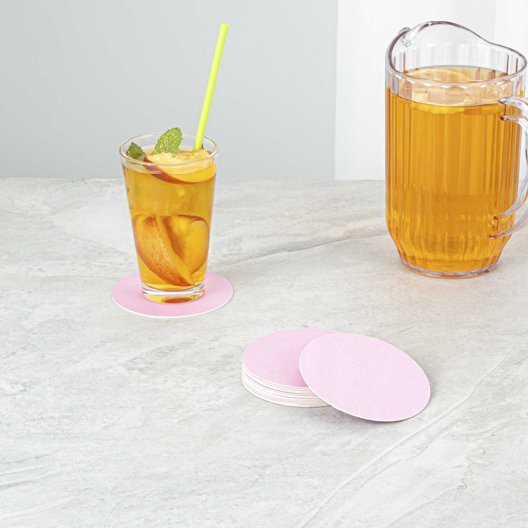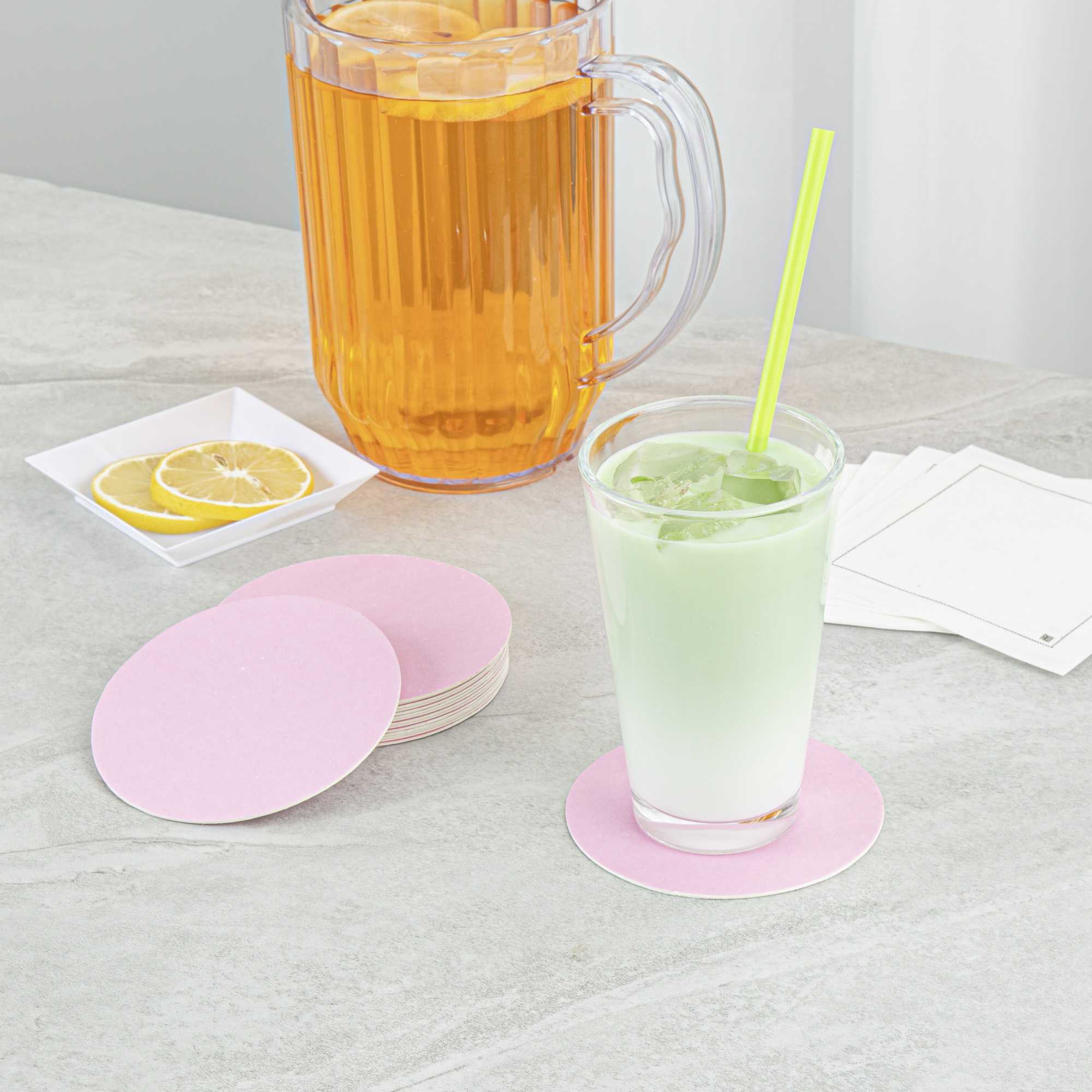 Enhance beverage service with versatile, absorbent drink coasters. Bar Lux High-Density Absorbency Drink Coaster features a 4-inch round design that accommodates various glass sizes, offering flexibility for all types of drinkware. Made from a high-density absorbent board, this paper coaster speeds up condensation cleanup and minimizes mess, making it an ideal table protector during busy shifts. Its reusable design helps reduce waste and replacement costs, while the ability to print in full color supports custom branding to elevate your establishment’s identity. The vibrant pink color adds a lively touch to any setting, enhancing the aesthetic appeal of your beverage presentations. Whether shielding surfaces at bustling bars or adding flair to catered events, these coasters provide a practical and stylish solution. Ensure your tables and counters stay protected with these indispensable coasters. Each order includes 100 Bar Lux High-Density Absorbency Drink Coaster.