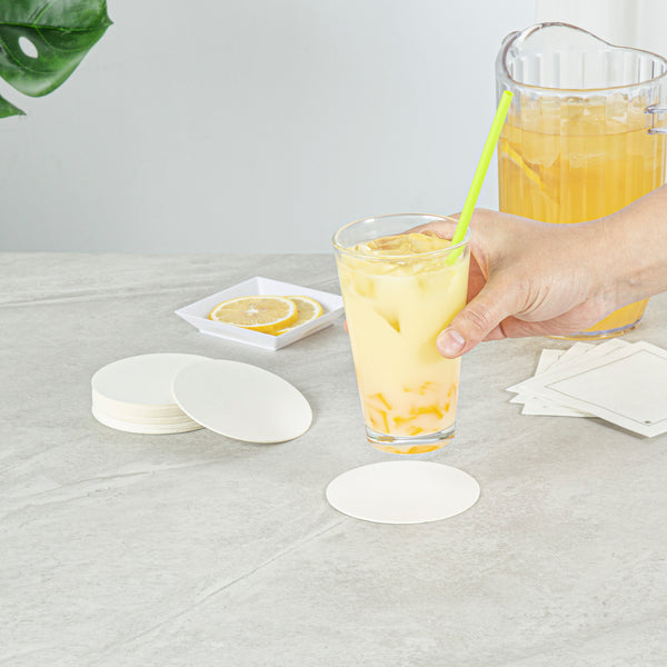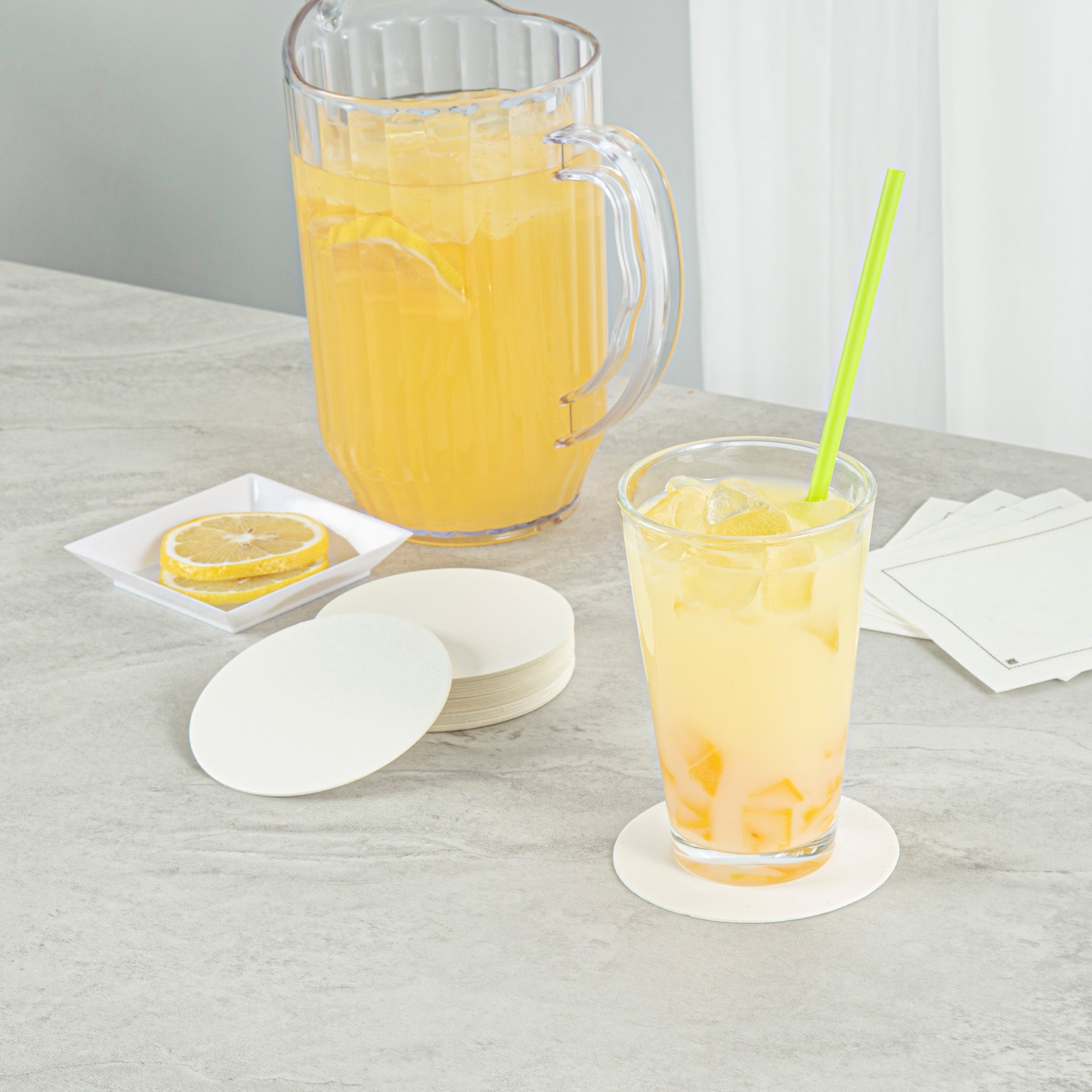 Ensure impeccable tabletop presentation with these versatile drink coasters. The Bar Lux Super Absorbent Drink Coaster offers a high-density water-absorbent board that dries faster for reuse, making it an ideal choice for busy bars and restaurants where quick turnover is vital. Designed as an absorbent coaster, it features a tear-resistant construction that withstands spills from both hot and cold drinks, ensuring long-lasting durability. With a 3.5-inch round design, these paper coasters easily accommodate a range of glassware sizes, providing flexibility across service scenarios. The classic white color complements any décor, enhancing the visual appeal of your beverage service while allowing for full-color printing to boost brand visibility. Simplify post-service cleanup and support eco-friendly practices with these disposable coasters, perfect for high-volume establishments. Elevate your drink service experience with these reliable paper coasters. Each order includes 1000 Bar Lux Super Absorbent Drink Coasters.