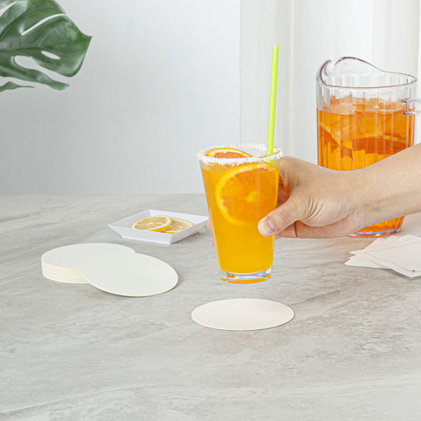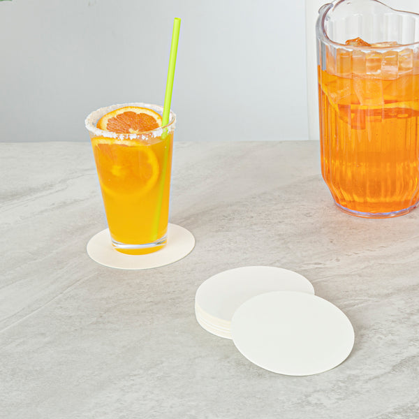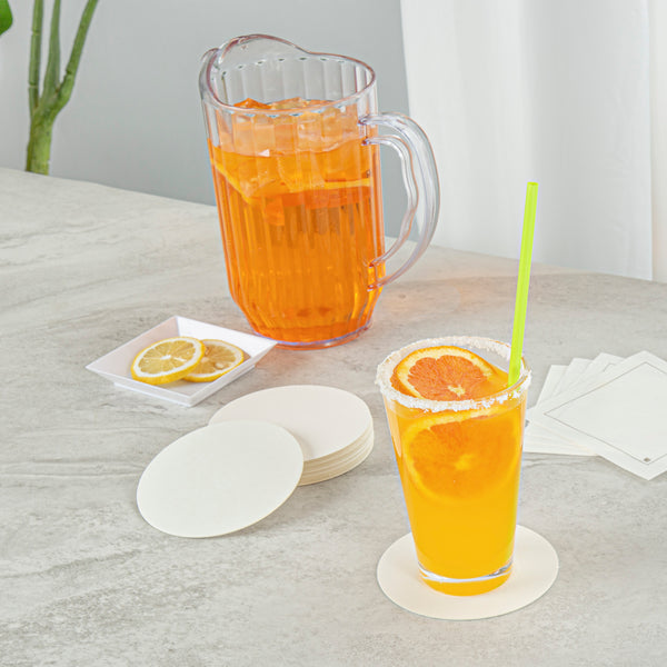 Enhance your beverage presentation with superior moisture control. Bar Lux Super Absorbent Drink Coasters feature a high-density, water-absorbent board that absorbs moisture faster than ordinary coasters, ensuring quicker cleanup and preventing messes on your bar tops. These drink coasters are not only absorbent but also reusable, allowing you to air-dry them after each use, significantly reducing waste and operational costs. The customizable full-color printing option on these absorbent coasters enables you to reinforce your brand's identity, making them a perfect fit for stylish and branded bar settings. Crafted from a durable paper material, these pulpboard coasters are tear-resistant and designed to withstand both hot and cold drinks, adding a reliable and versatile solution to your barware collection. Elevate your service with these efficient and visually appealing coasters. Each order includes 1000 Bar Lux Super Absorbent Drink Coasters.