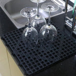 Keep glassware intact using our Bar Lux Square Black Bar Mats. Designed with diamond-shaped cutouts, these bar mats are ideal for promoting airflow to quickly dry off cups and drinkware. The interlocking capabilities of these rubber bar mats allow you to connect with other mats to cover surface areas of all sizes at your establishment. Crafted with premium rubber, these interlocking mats are made to cushion the impact of glassware and extremely durable to withstand daily use at your bar. These lightweight and flexible bar mats can be conveniently placed in dry or wet storage areas for multipurpose use. With a stylish and simple black finish, these rubber bar mats complement the look of your bar. For easy and quick cleanup after use, these bar mats are dishwasher-safe. Measuring 12 inches in length by 12 inches in width, these interlocking mats provide ample space for all kinds of drinkware. Shipped in a 50 count box.