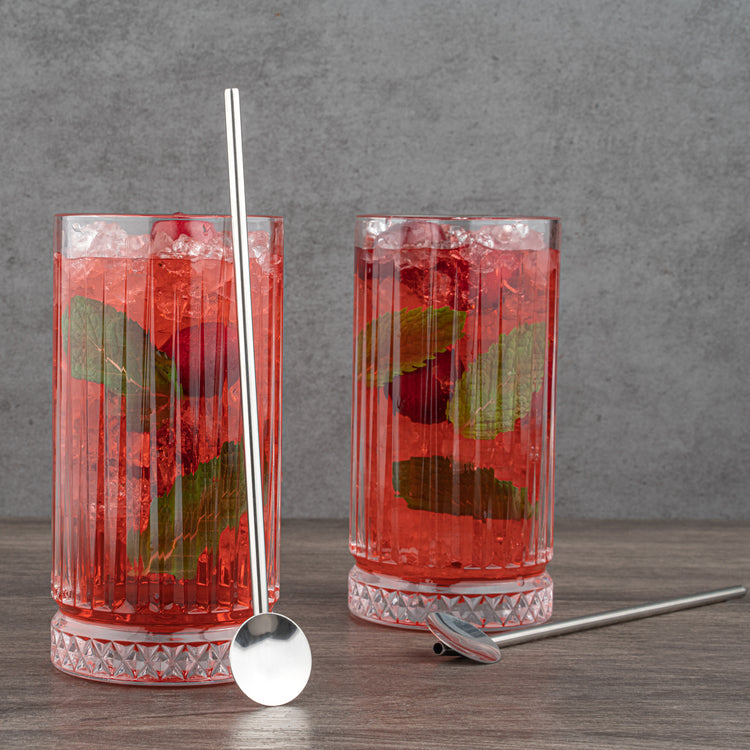 Experience the perfect blend of stirring and sipping with our Bar Lux Stainless Steel Julep Spoon Straws. Crafted for durability, these stainless steel straw spoons bring a touch of sophistication to your array of refreshing beverages. The innovative design of these drink mixing straws seamlessly merges the functionality of a spoon with the convenience of a straw, ensuring optimal usability. These reusable straws not only reduce waste but also elevate the aesthetic of your bar, restaurant, or catering service. Whether you're concocting strawberry daiquiris at a poolside bar or adding a polished touch to iced vanilla lattes at a trendy cafe, these versatile sipping spoons redefine style and practicality in beverage presentation. Each metal straw mixing spoon measures 7.5 inches in length. Sold ina 2 count box.