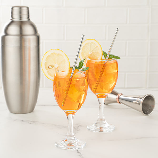 Experience elegance and eco-friendliness with our Bar Lux Stainless Steel Straws. Crafted from premium food-grade stainless steel, these reusable straws showcase a chic design, offering a luxurious touch to your beverage ensemble. Being reusable, a swift hand wash is all they need for countless uses. With these gold-plated straws, contribute to a greener planet by reducing waste. These reusable stainless steel straws measure 5 inches in length and are perfectly designed to fit snugly into short glasses, uplifting the charm of your carefully mixed drinks. Sold in a 2 count box.