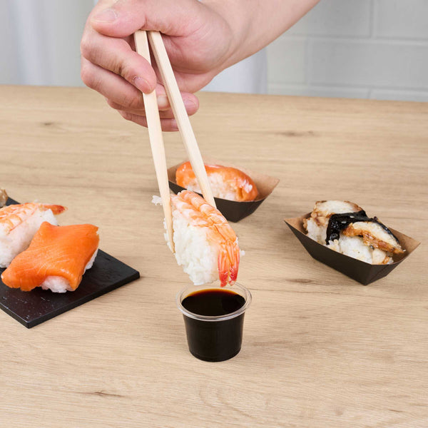 Enhance your offerings with compostable portion cups. Basic Nature Compostable Portion Cups are crafted from clear plastic, measuring 1.8 inches by 1.8 inches by 1.4 inches, providing a sustainable solution that reduces environmental impact for your operations. Designed to align with global sustainability goals, these biodegradable souffle cups are BPA-free, ensuring the safe handling of food while meeting compostable standards in various markets. Their cold food-friendly nature makes them ideal for serving chilled sauces and dressings, while their crystal-clear transparency elevates the presentation of your beverages, turning them into visually appealing delights. Choose these cups to reinforce your commitment to sustainability while maintaining food safety standards. Each order includes 100 Basic Nature Compostable Portion Cups.
