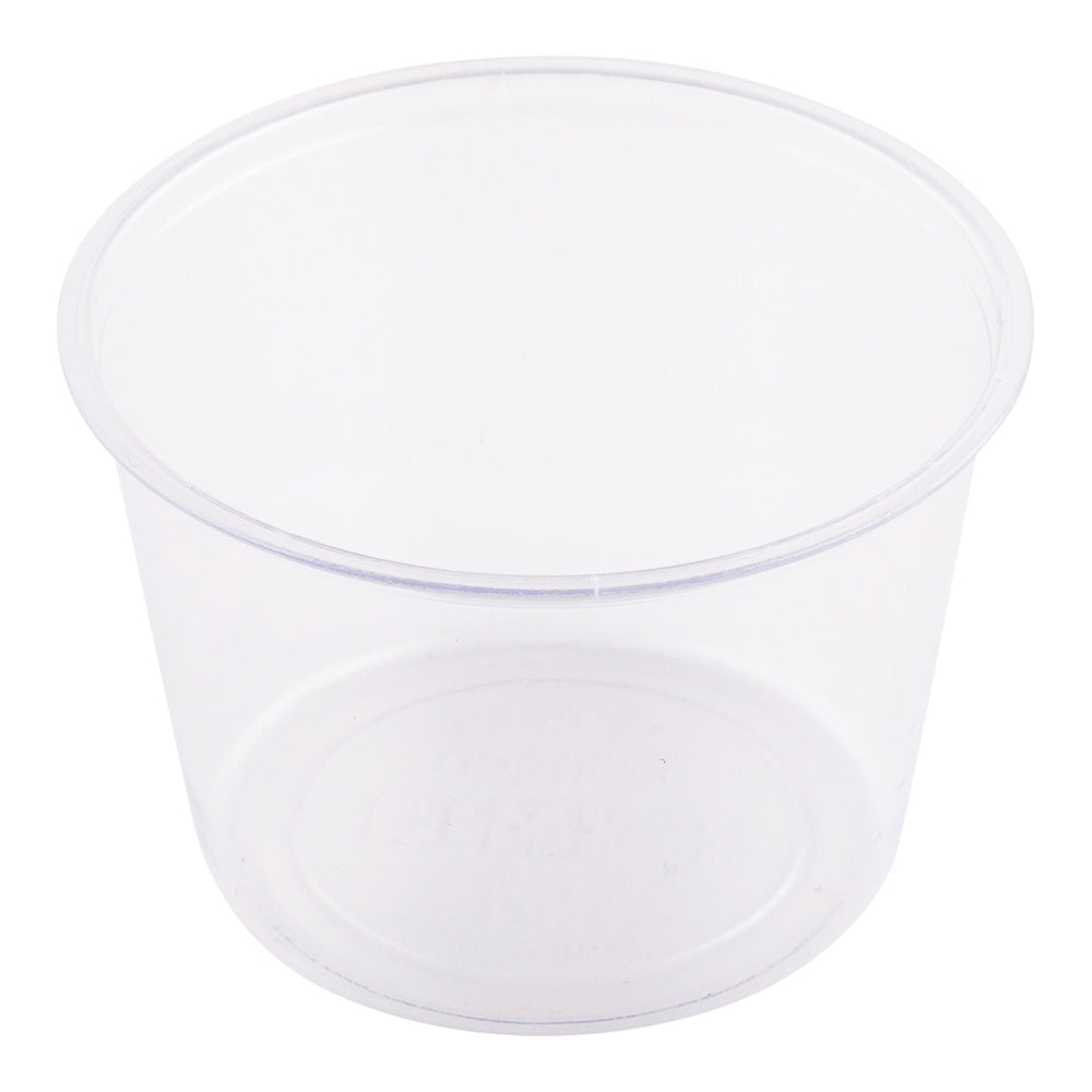 Package larger servings of dips or sides with our Basic Nature 4-ounce clear PLA plastic portion cup, designed for sustainable foodservice operations. Constructed from biodegradable PLA, this compostable cup maintains product visibility with its transparent design, enhancing presentation and efficiency. Cold food friendly and freezer-safe, it provides dependable storage for chilled condiments and snacks. Measuring 2.75 inches in diameter by 1.9 inches in height, this sturdy cup is sold in a 2,000 count box.