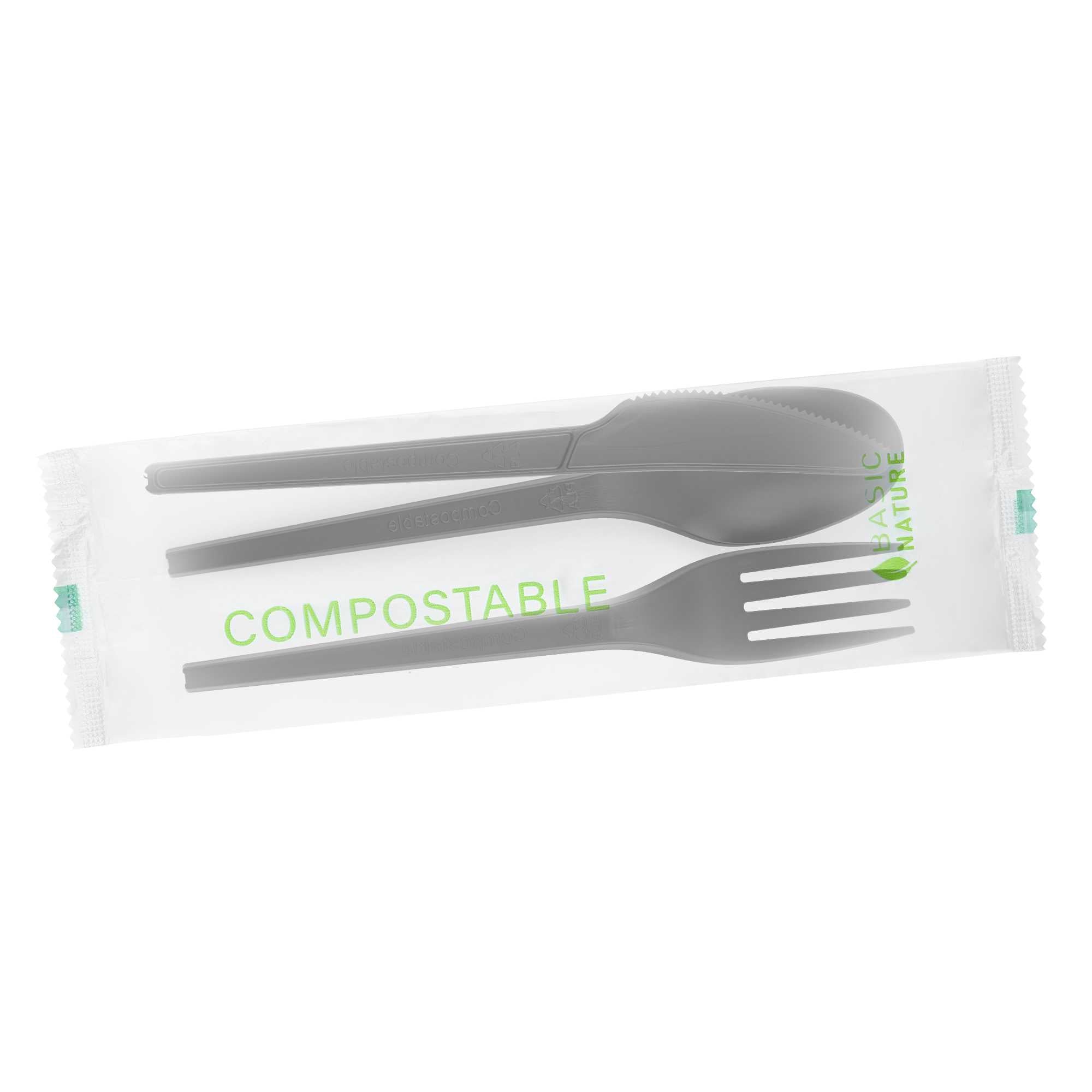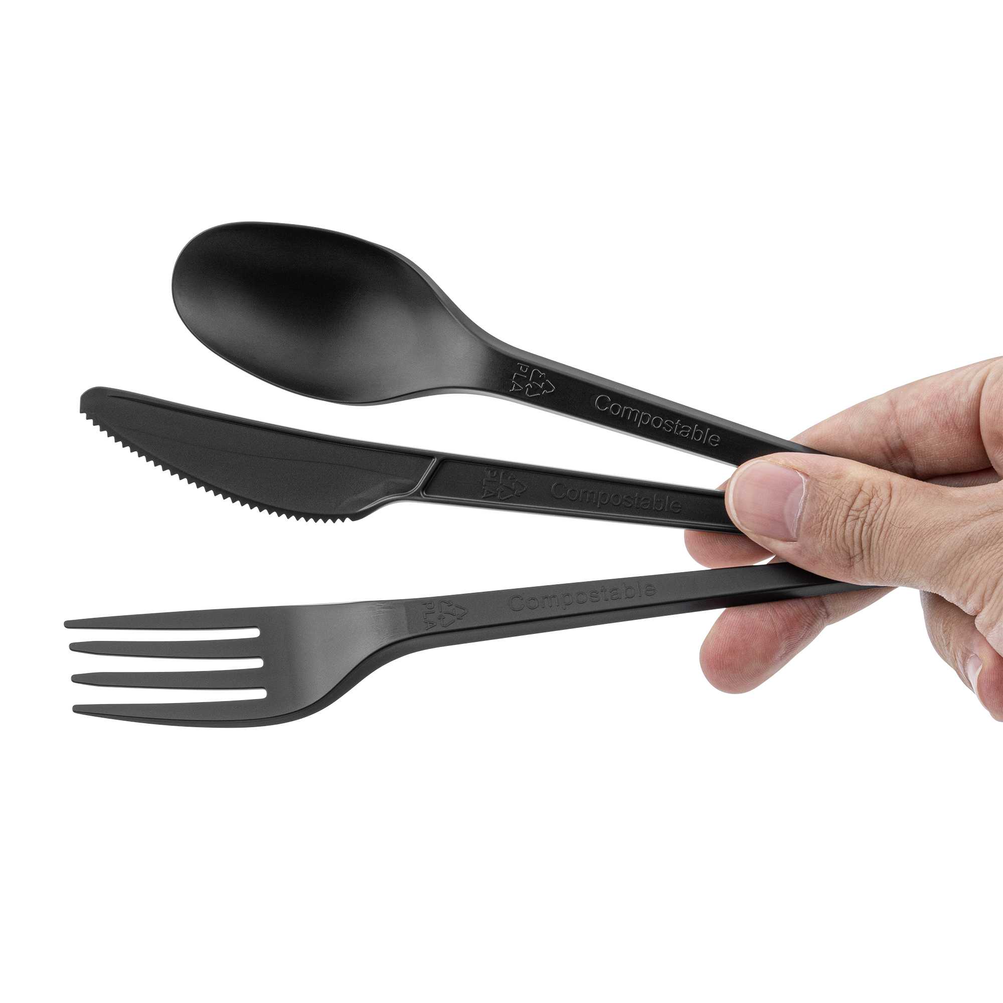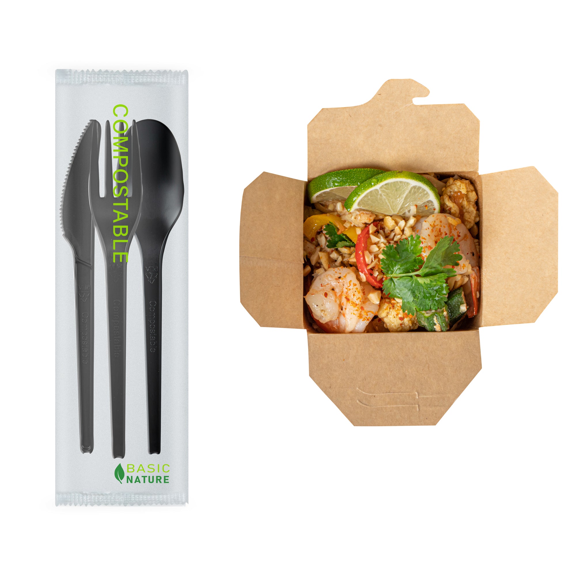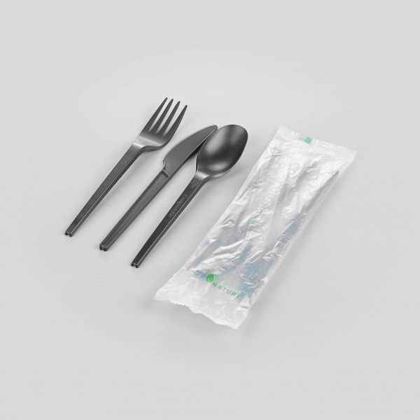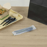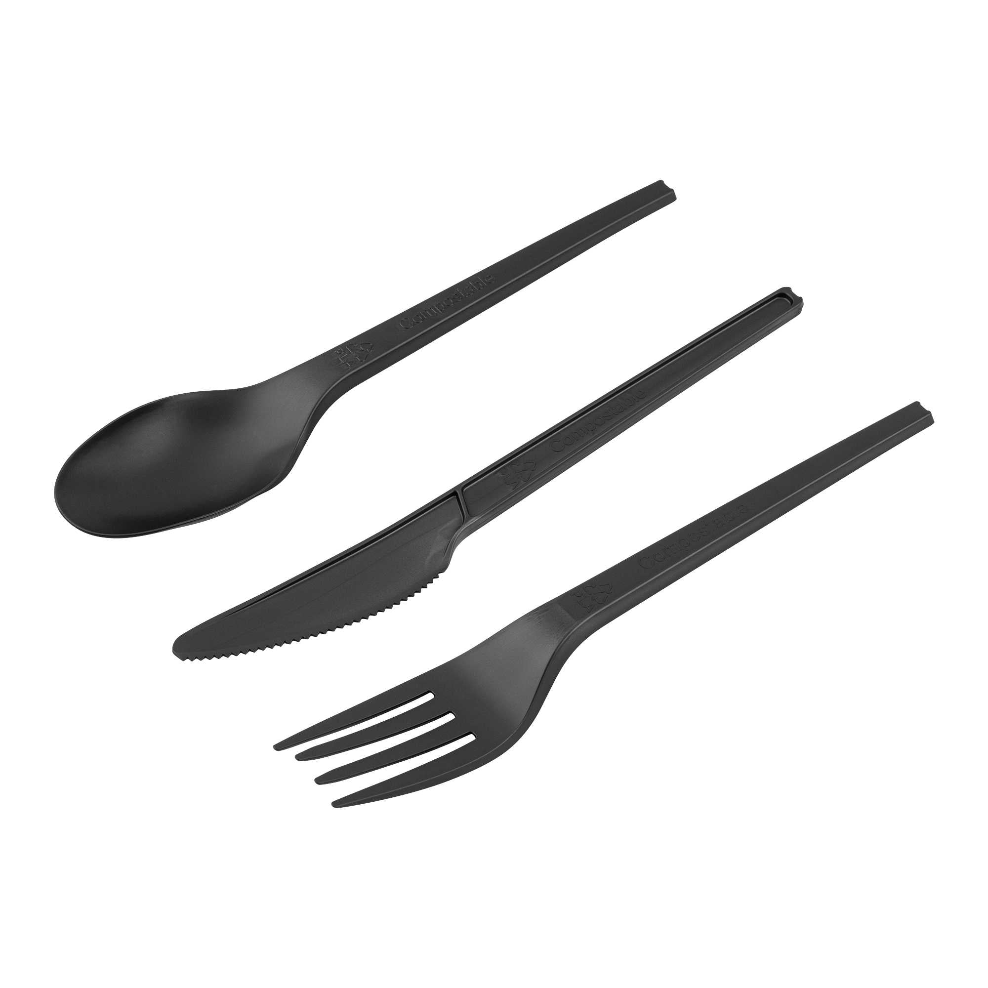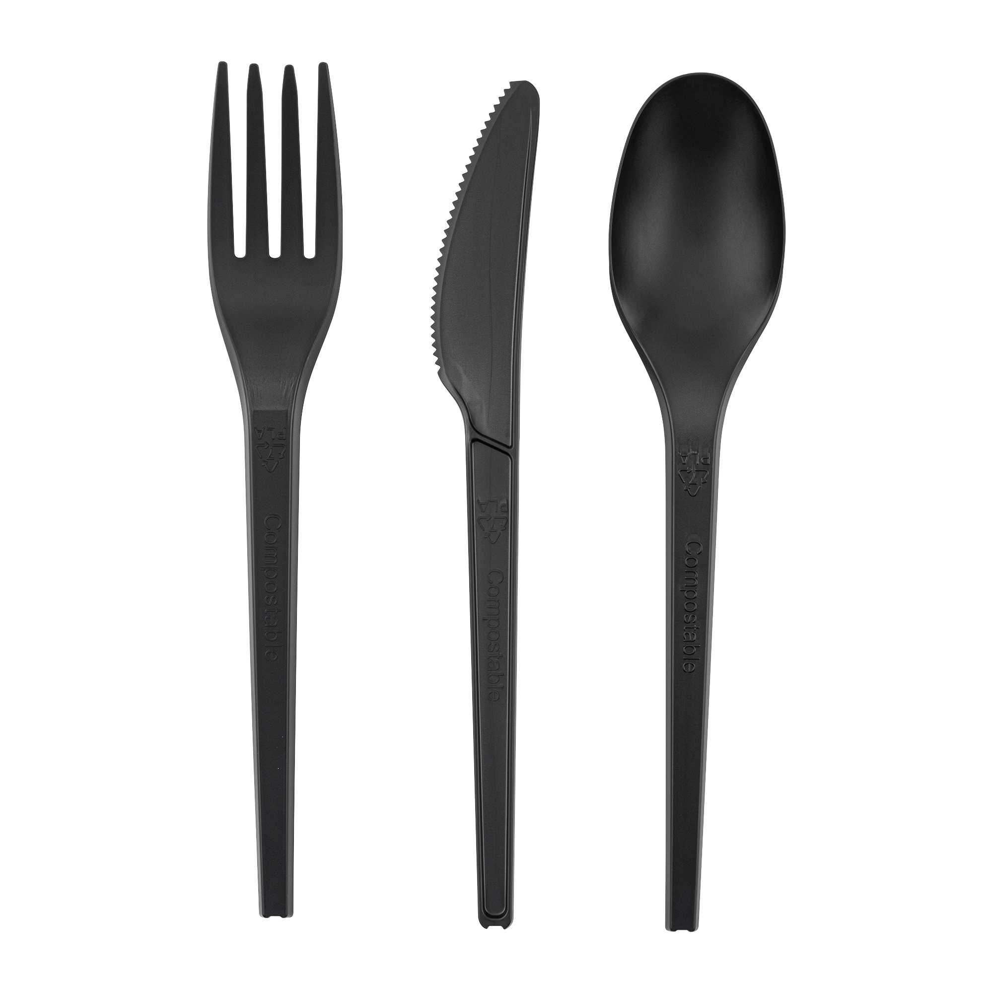 BLACK CPLA PLASTIC CUTLERY SET - COMPOSTABLE WRAPPER, HEAT-RESISTANT