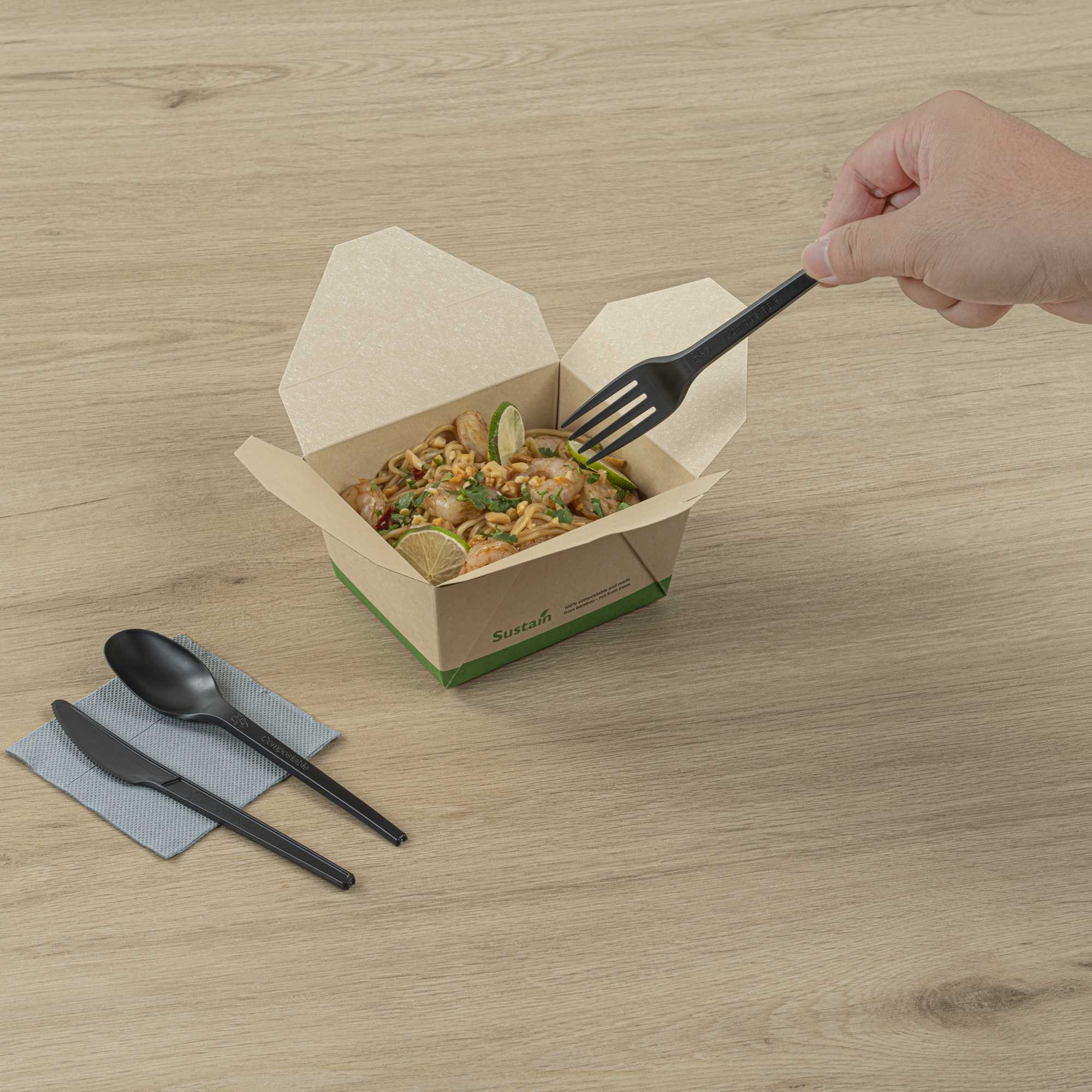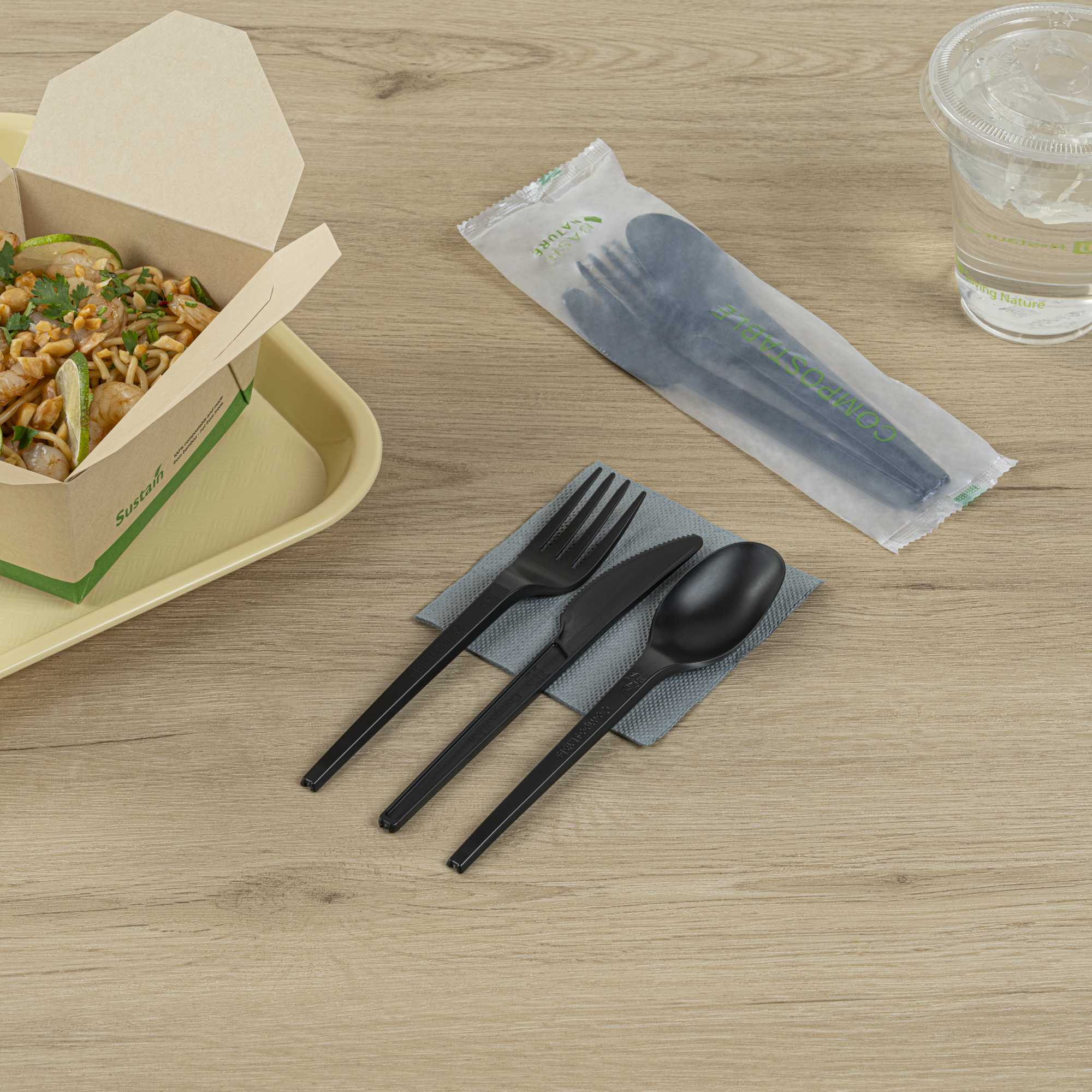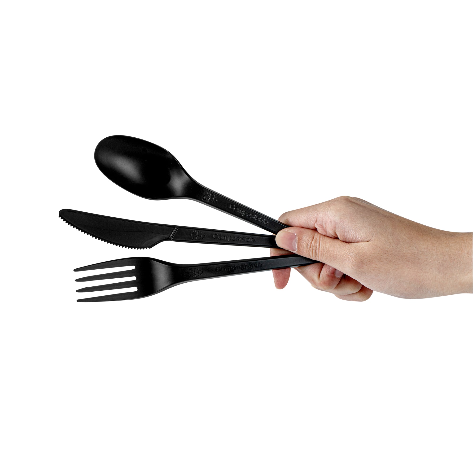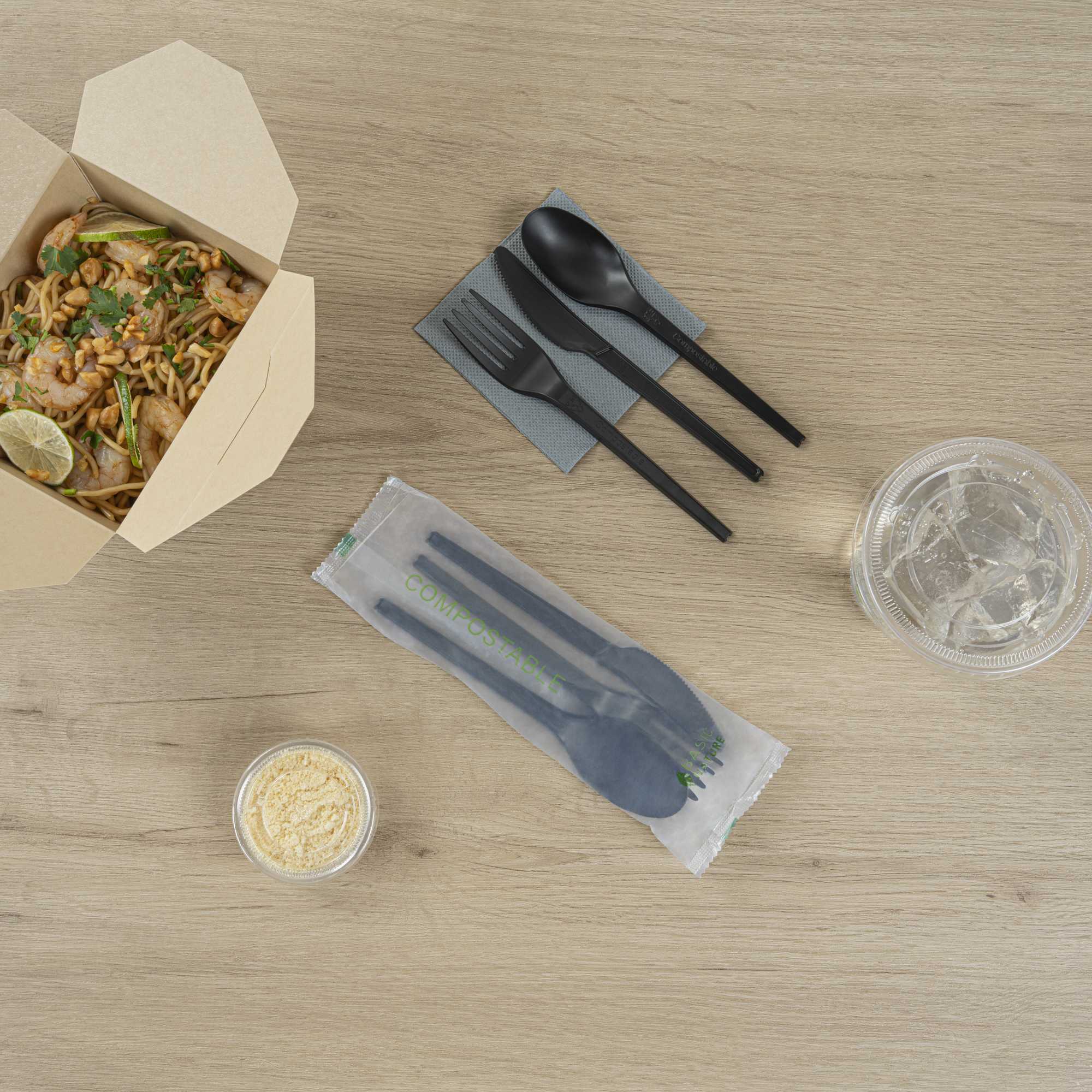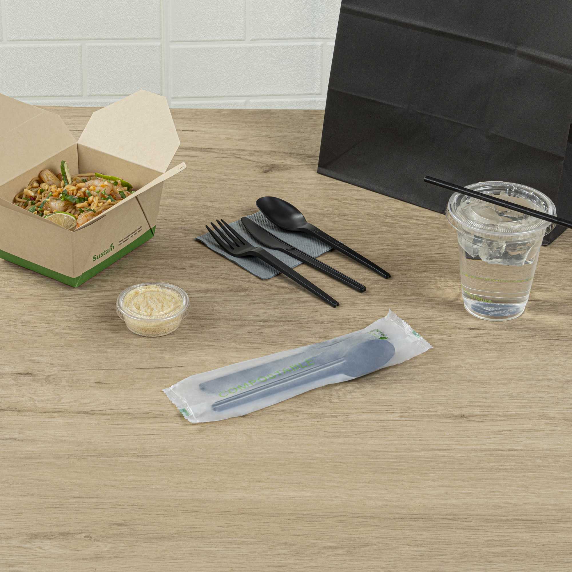 BLACK CPLA PLASTIC CUTLERY SET - COMPOSTABLE WRAPPER, HEAT-RESISTANT