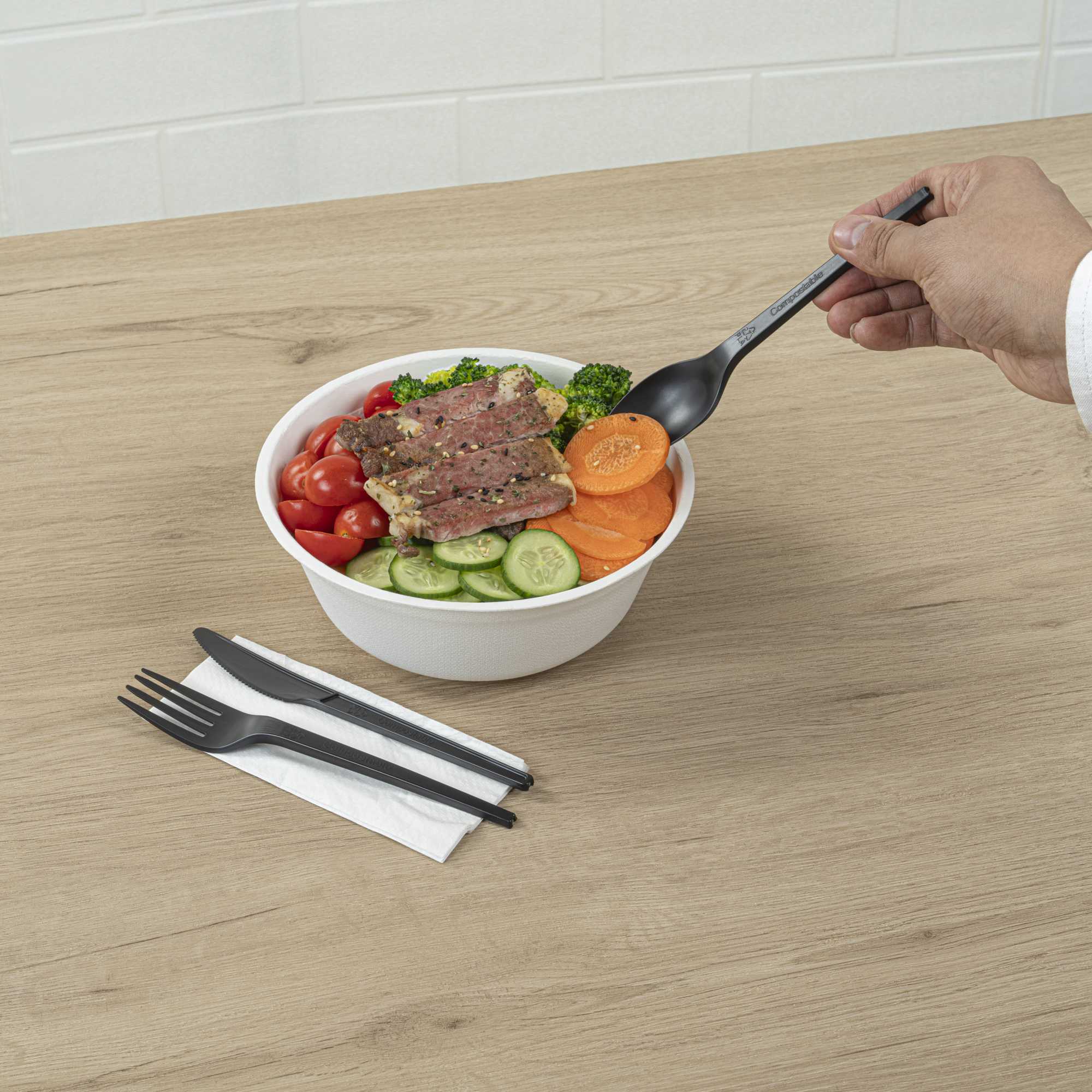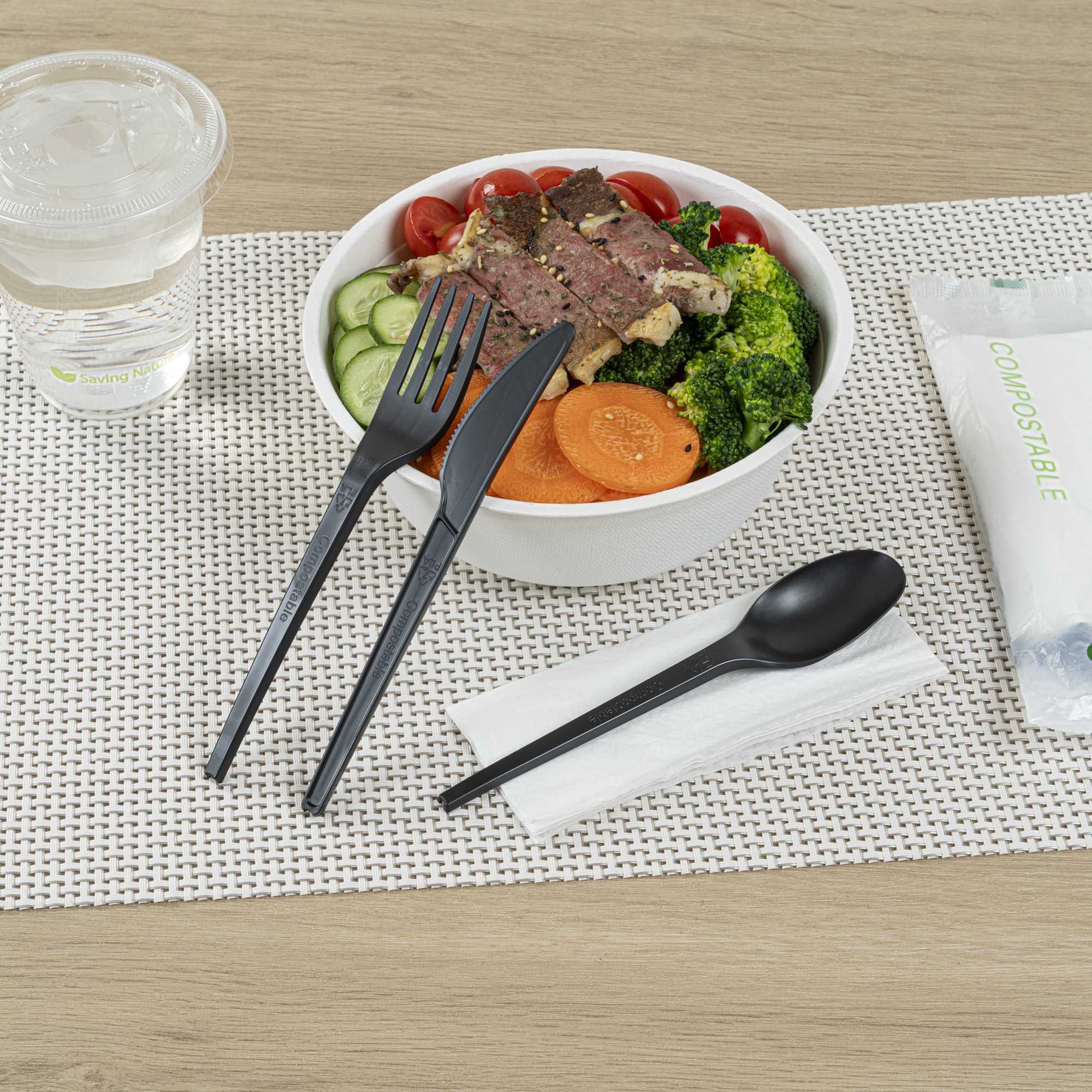 Each utensil is available in black or white to perfectly match the theme or decor of any event. Plus, these cornstarch utensils are dyed without unnecessary additives or chemicals.