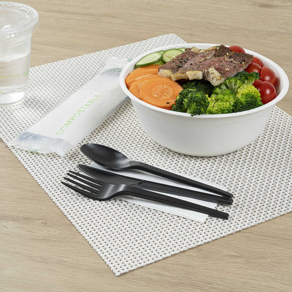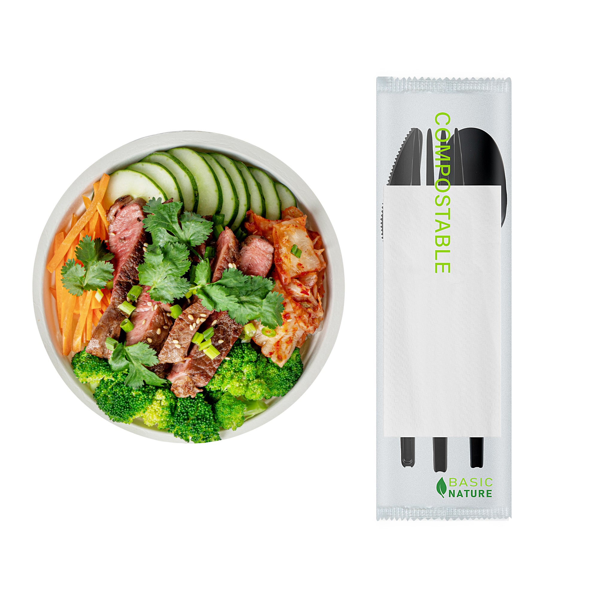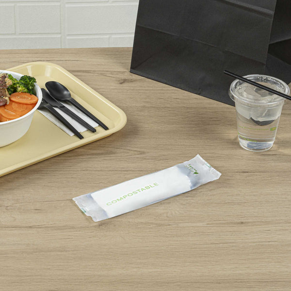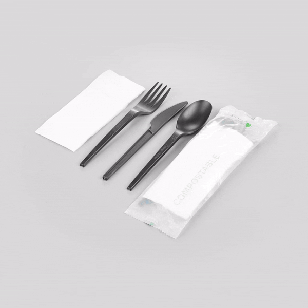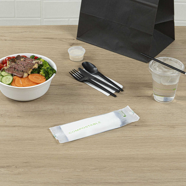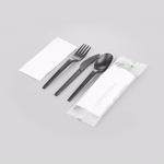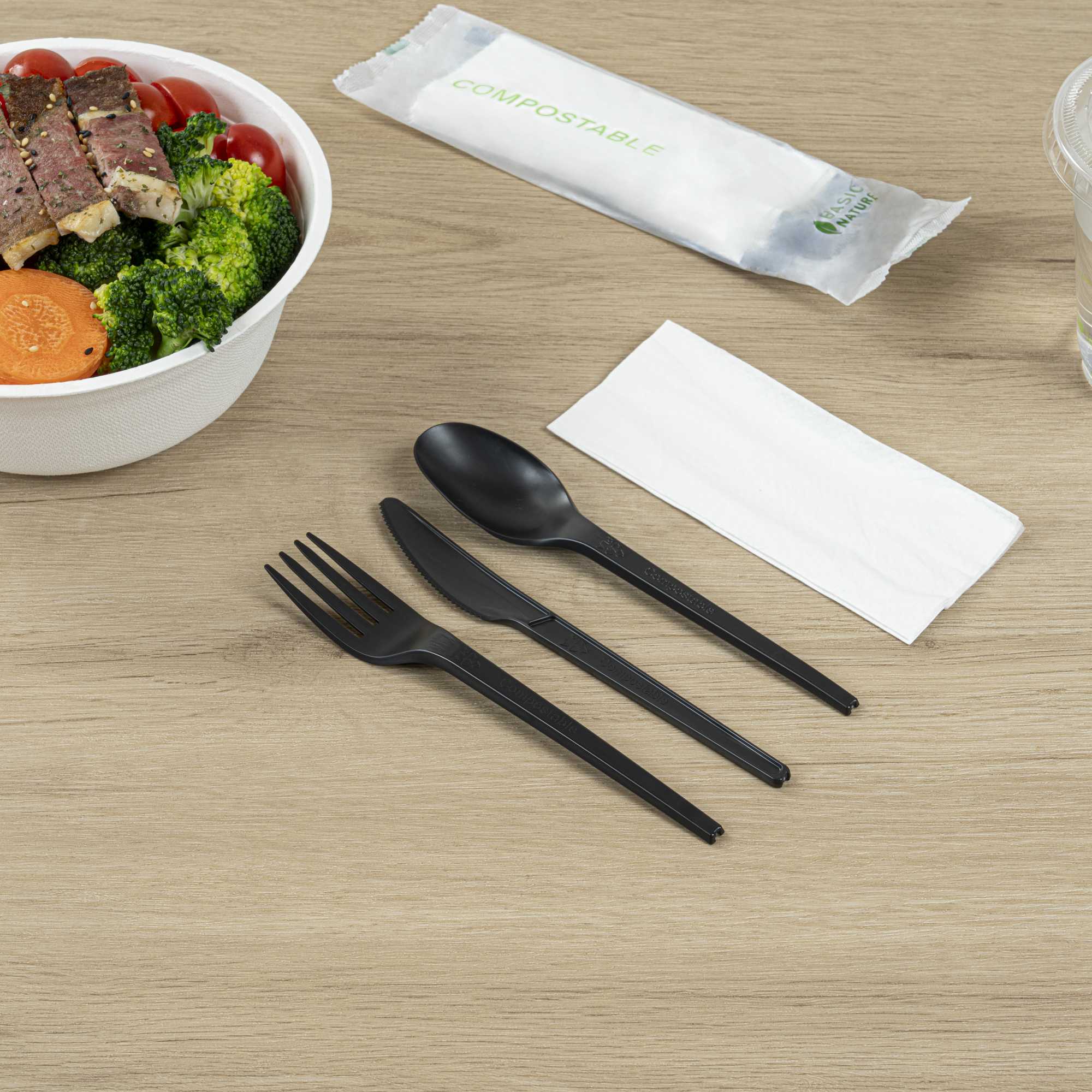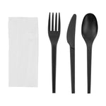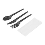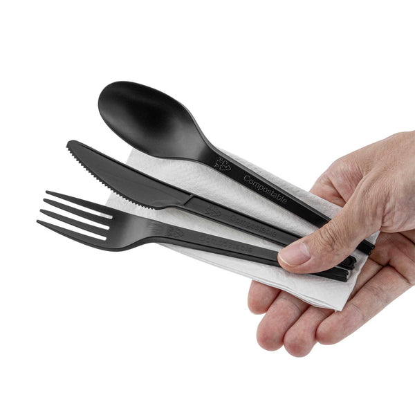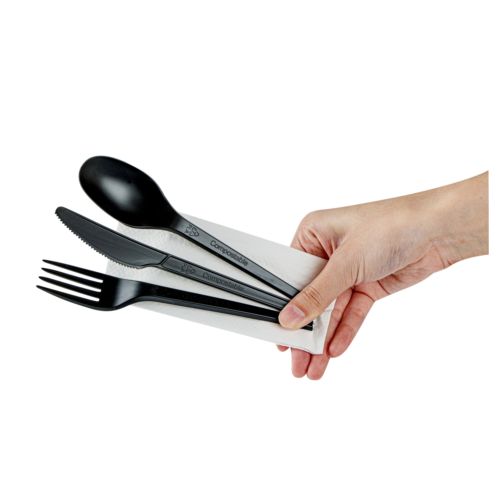BLACK CPLA PLASTIC CUTLERY SET - WRAPPER,WHITE NAPKIN,HEAT-RESISTANT