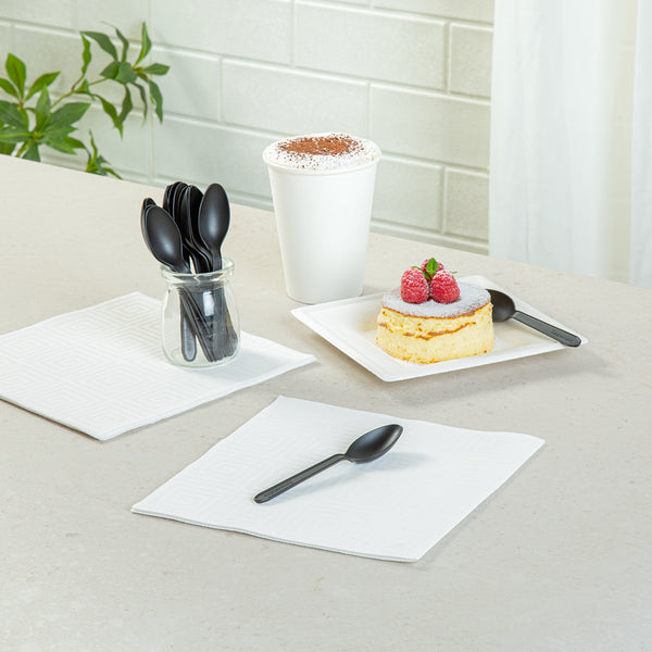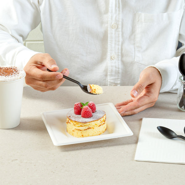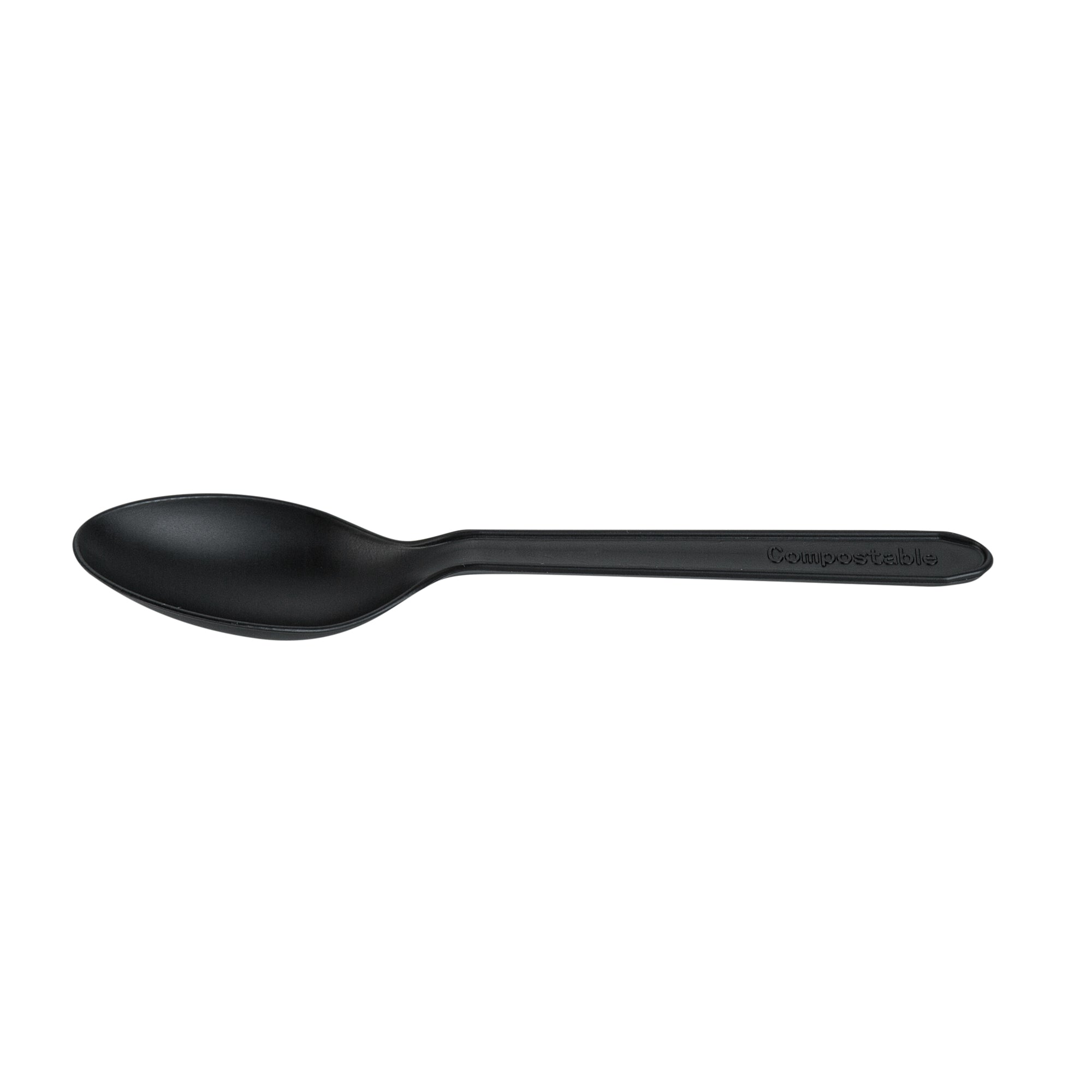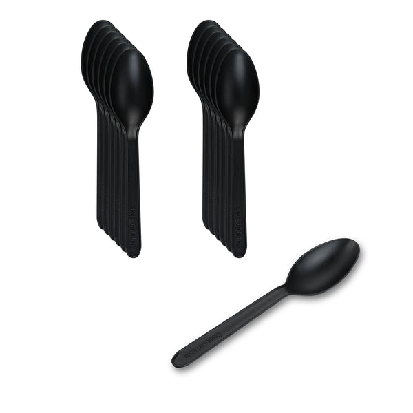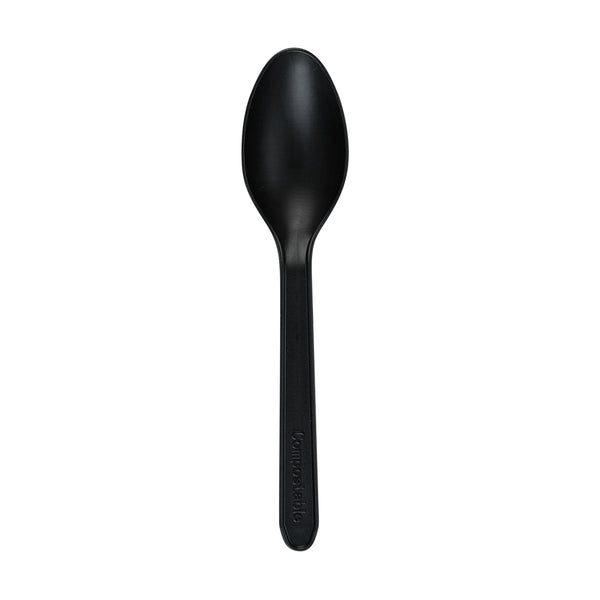 BLACK CPLA PLASTIC DESSERT SPOON - HEAT-RESISTANT, COMPOSTABLE