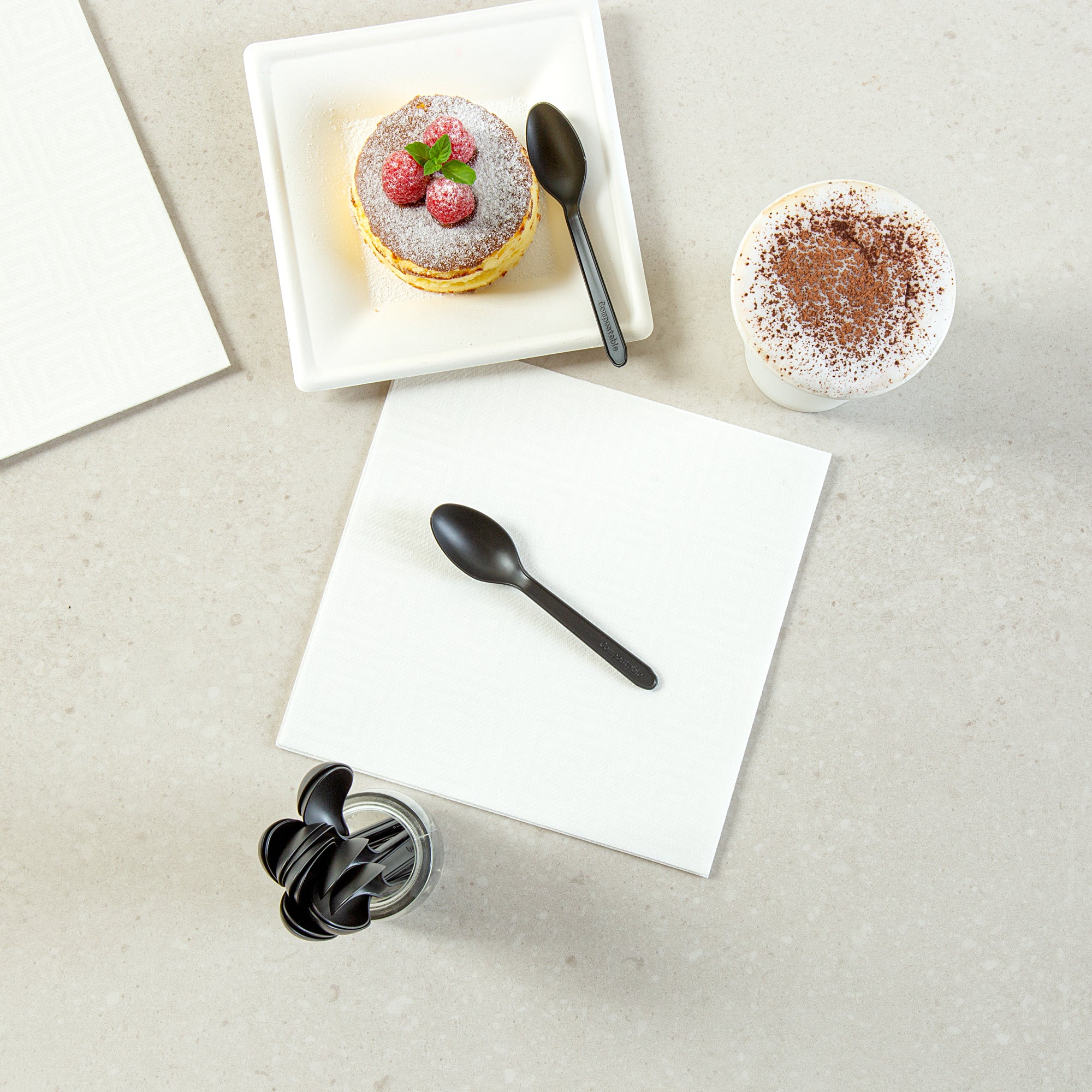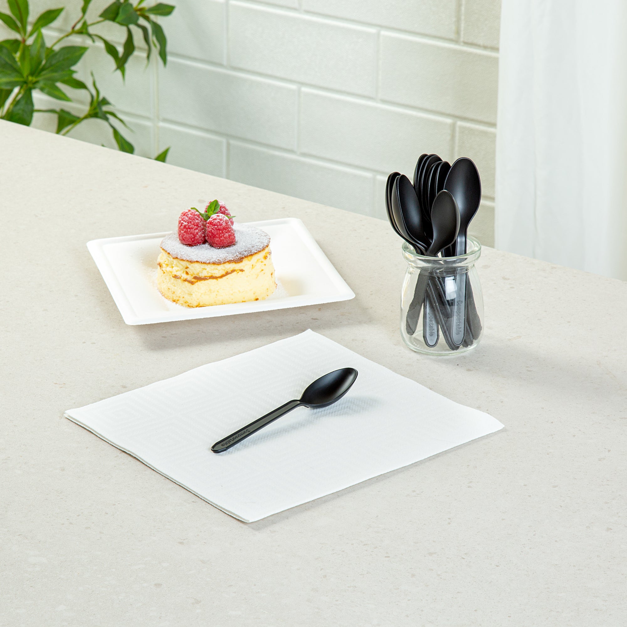 - Commercially compostable plastic provides an eco-friendly alternative to traditional plastic cutlery
