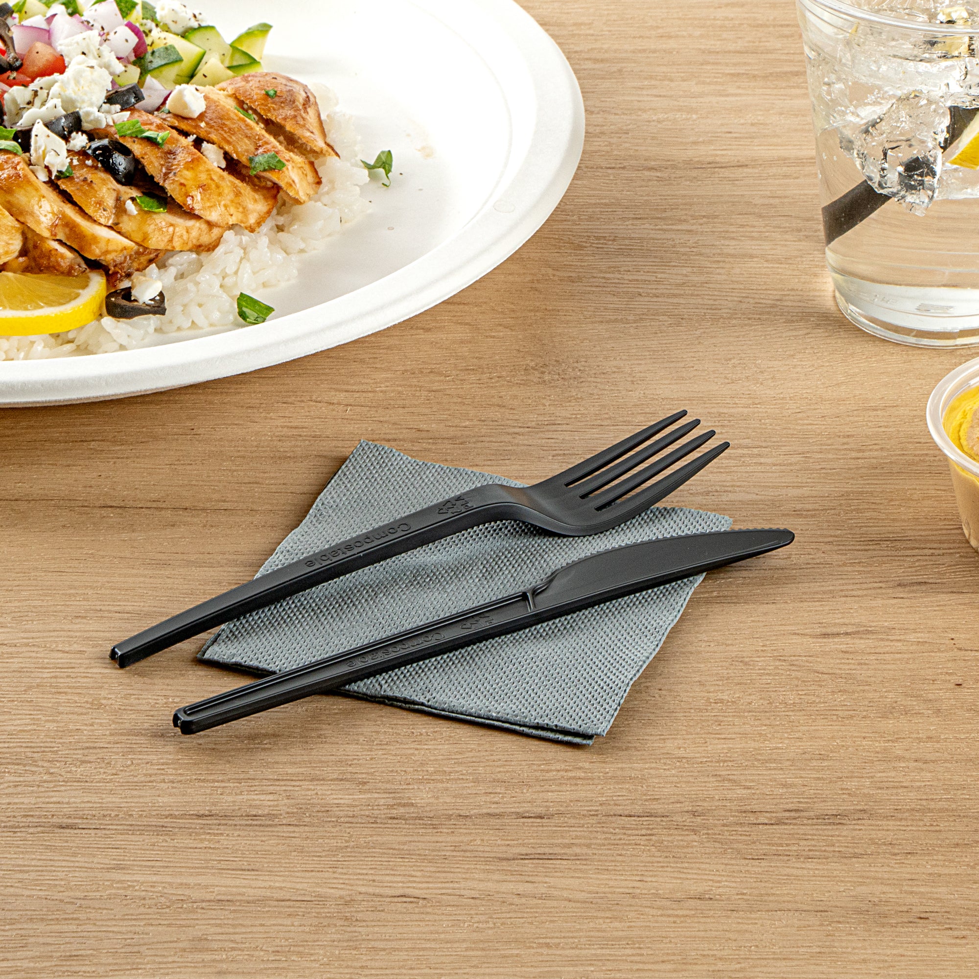 Each utensil is available in black or white to perfectly match the theme or decor of any event. Plus, these cornstarch utensils are dyed without unnecessary additives or chemicals.