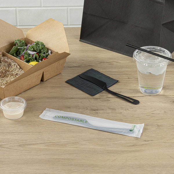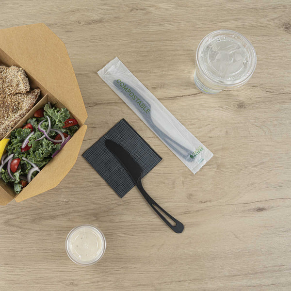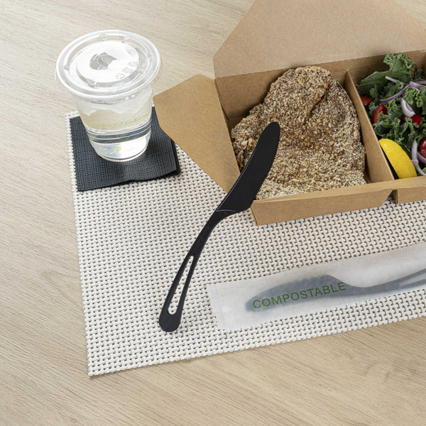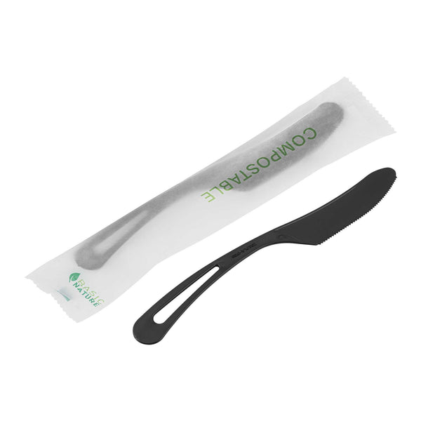 BLACK CPLA PLASTIC KNIFE - COMPOSTABLE WRAPPER, HEAT-RESISTANT
