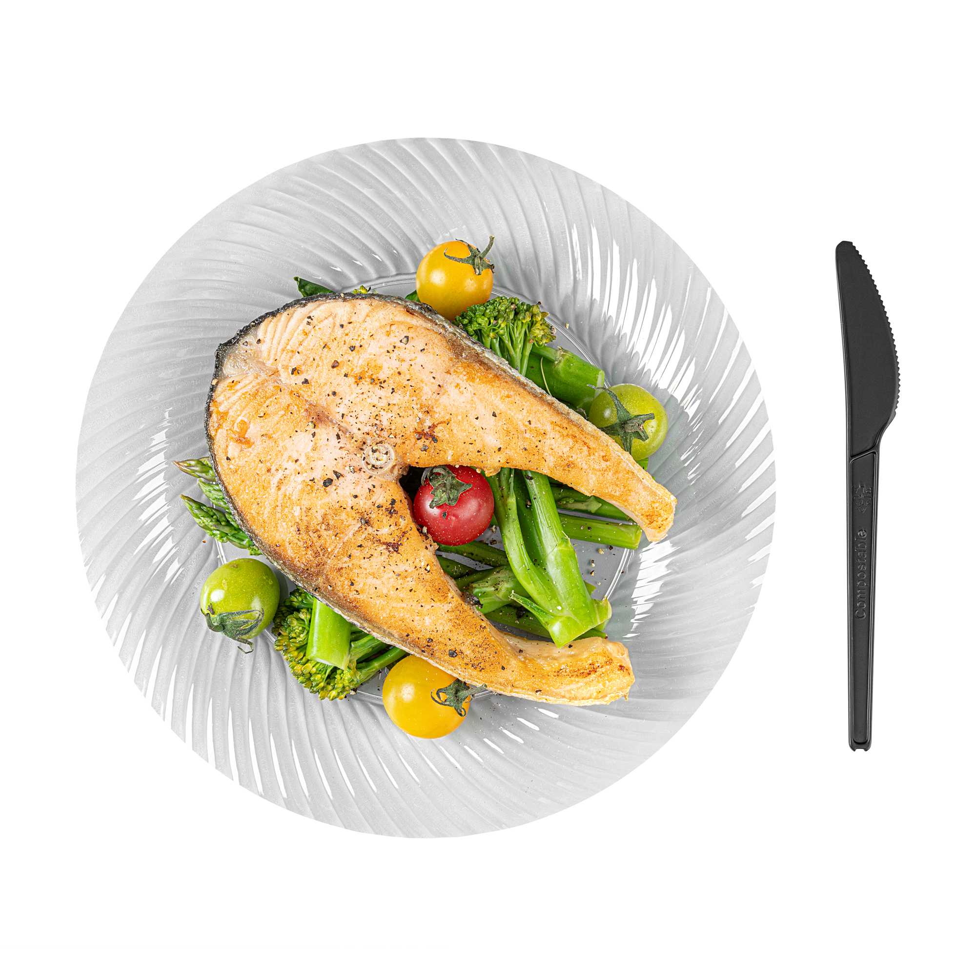 Made from PLA, a cornstarch-based bioplastic, these utensils are compostable with BPI certitifcation. Designed with an embossed "Compostable" message to remind guests of the correct way to dispose of these utensils.