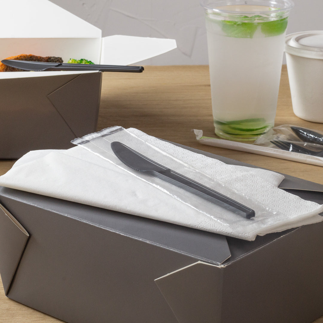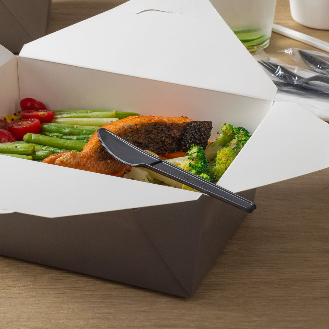 BLACK CPLA PLASTIC KNIFE - WRAPPED, HEAT-RESISTANT, COMPOSTABLE