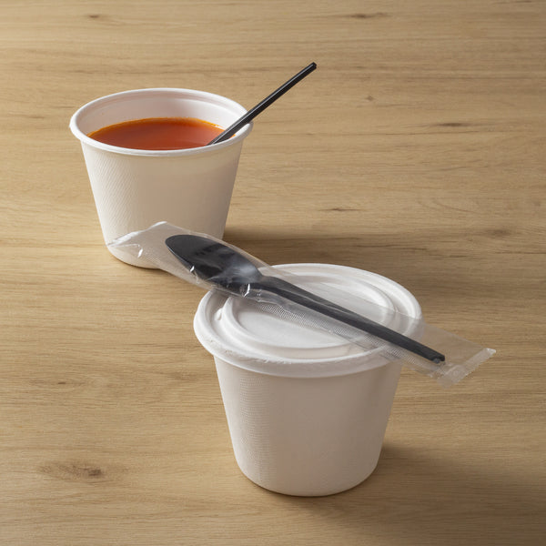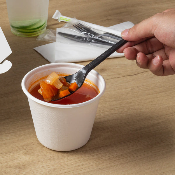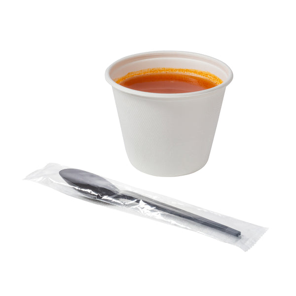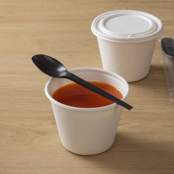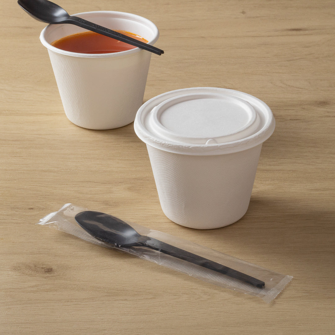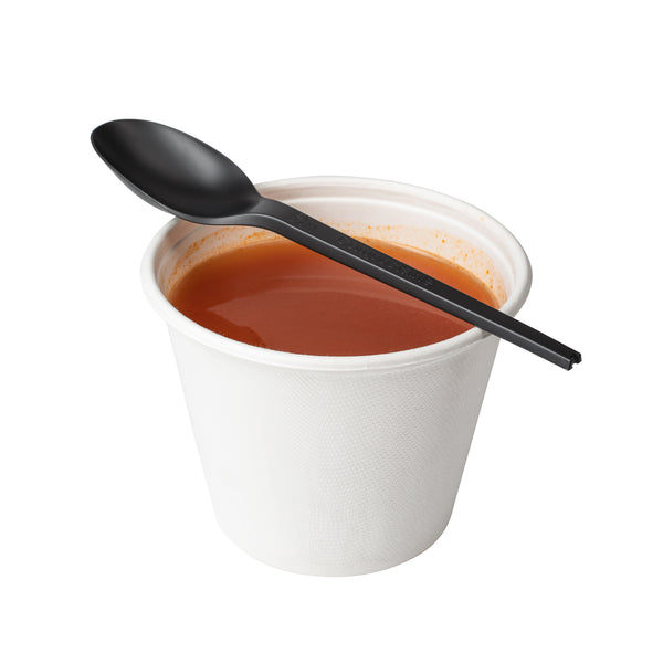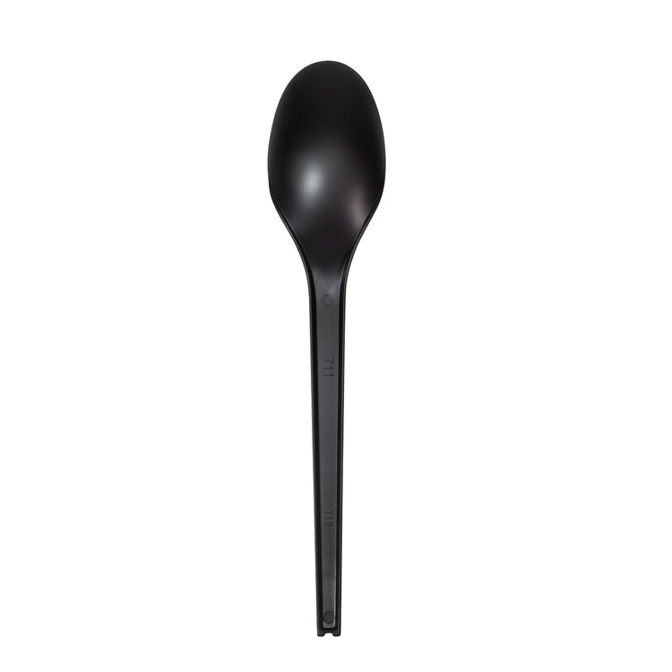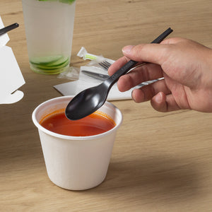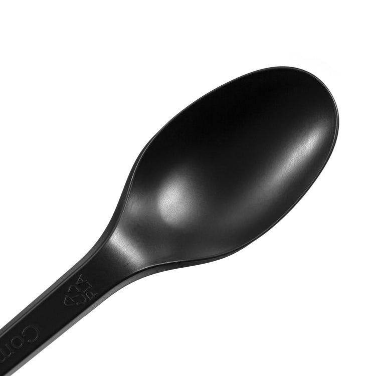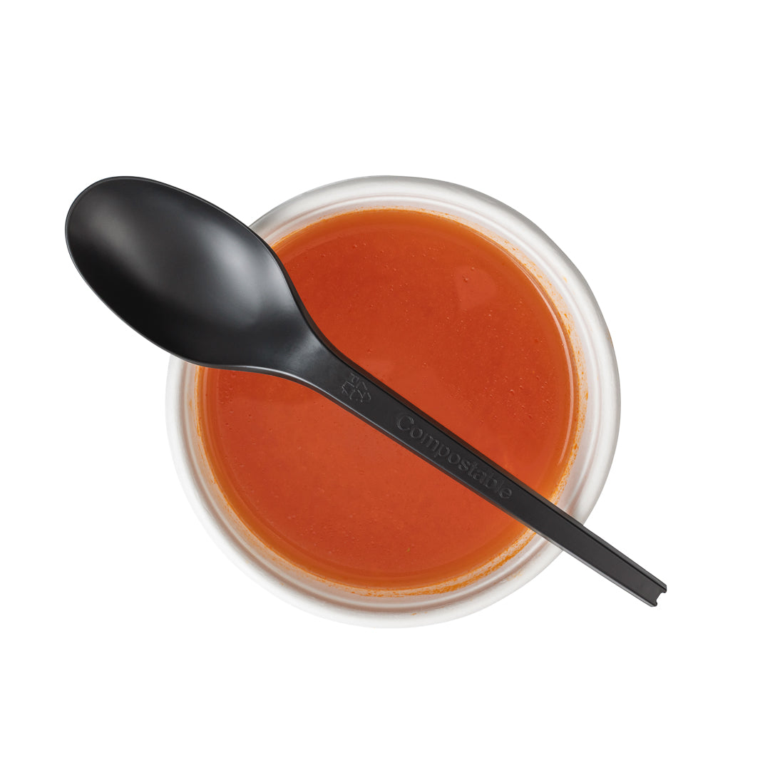 BLACK CPLA PLASTIC SPOON - WRAPPED, HEAT-RESISTANT, COMPOSTABLE