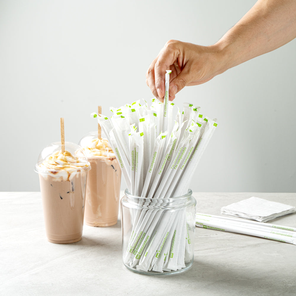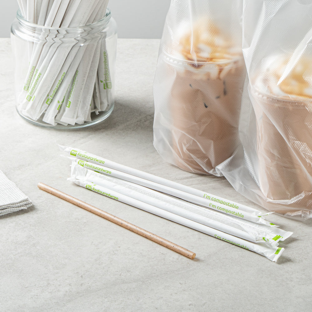 BROWN PLA PLASTIC / COFFEE GROUND STRAW - WRAPPED, COMPOSTABLE