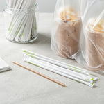 A selection of these disposable straws are covered in paper wraps with a sustainable message on them. Some of these straws also have flexible necks or wider mouths for you to choose from them.