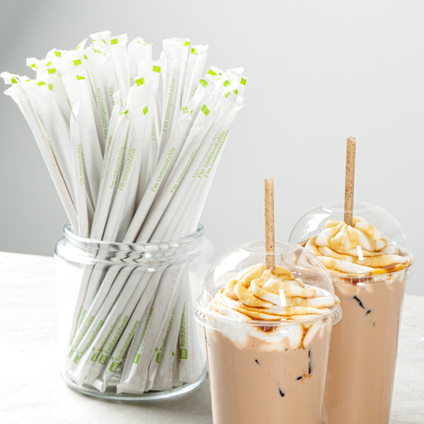 BROWN PLA PLASTIC / COFFEE GROUND STRAW - WRAPPED, COMPOSTABLE