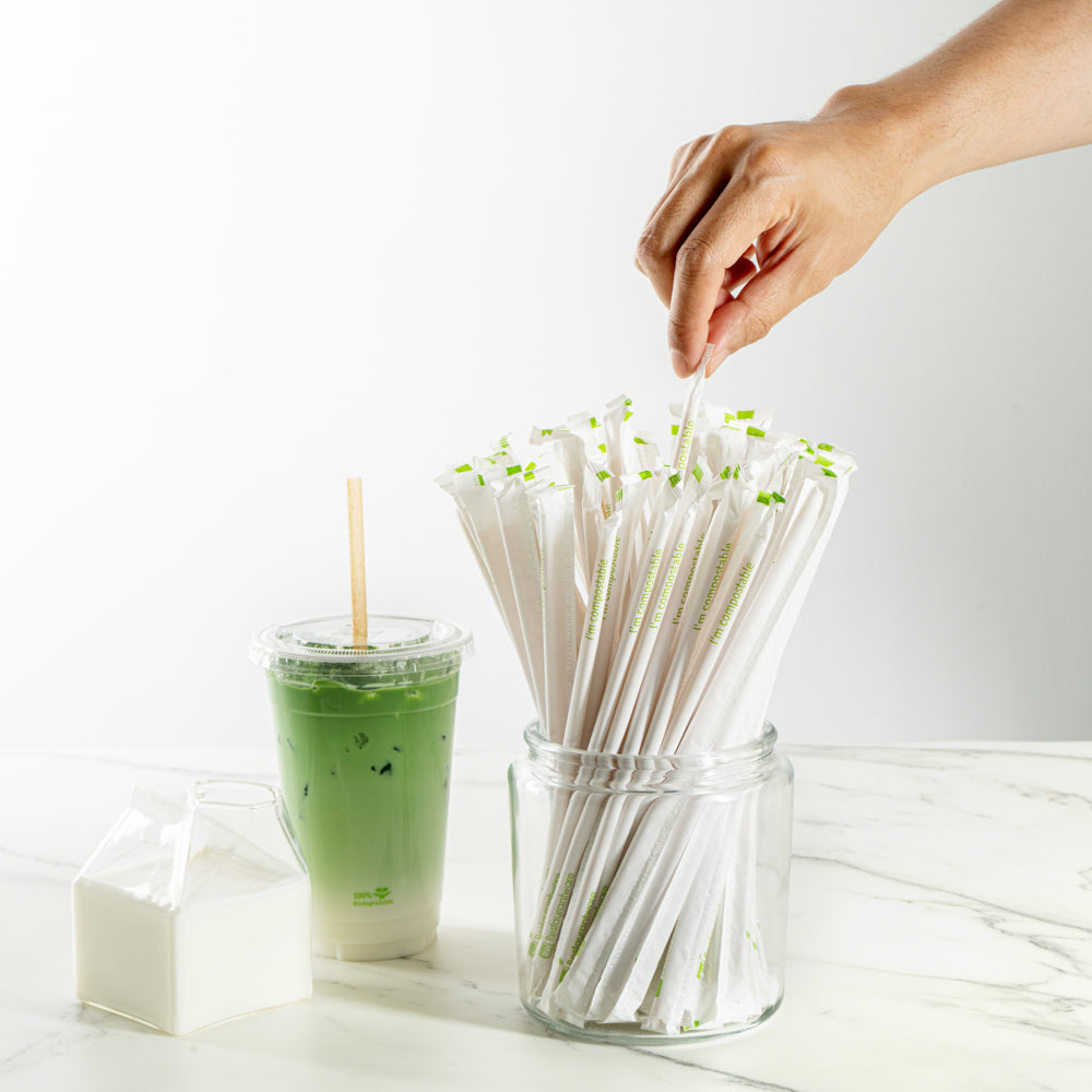A selection of these disposable straws are covered in paper wraps with a sustainable message on them. Some of these straws also have flexible necks or wider mouths for you to choose from them.
