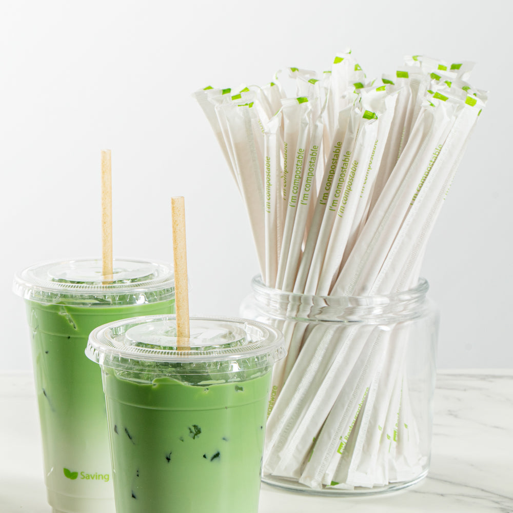 BROWN PLA PLASTIC / SUGARCANE STRAW - WRAPPED, COMPOSTABLE