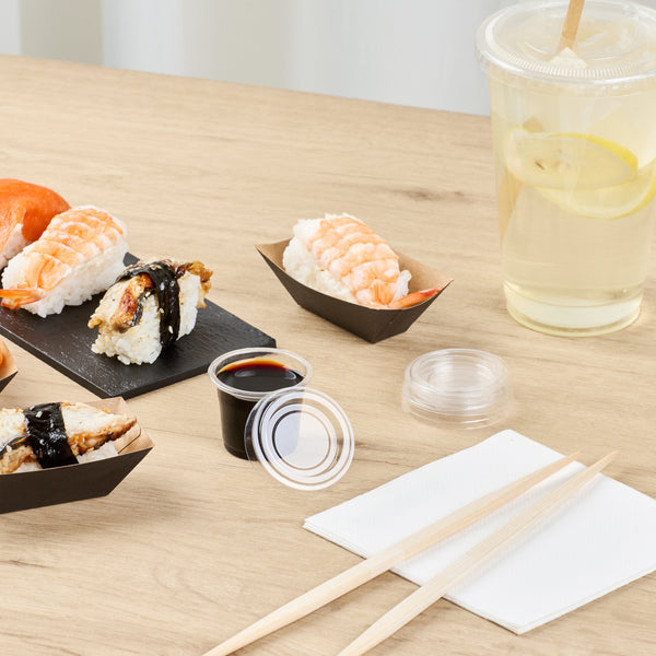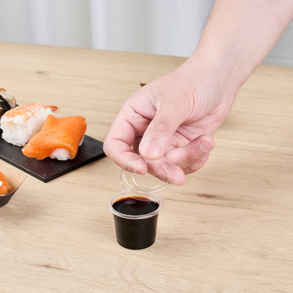 CLEAR PLA PLASTIC LID - FITS 1 OZ PORTION CUP, COMPOSTABLE
