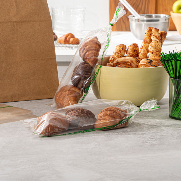 Discover the ideal solution for your food storage needs with our Basic Nature Clear Plastic Bags, designed to keep your snacks fresh and vibrant. Supporting sustainable disposal, these greaseproof bags are made from home compostable plastic, making them a sustainable choice for your kitchen. The no flap design ensures that these candy bags allow for effortless snack storage without any hassle. These heat-seal bags offer the convenience of locking in flavors and freshness with ease. Showcasing the vibrant colors of your treats beautifully, these bakery bags feature a clear finish that enhances display appeal. For added versatility, these bags are suitable for maintaining the quality of your food items when stored in cold conditions. Measuring 12.99 inches in length by 5 inches in width, these bags offer ample space for a variety of treats and snacks. Sold in a 100 count box.