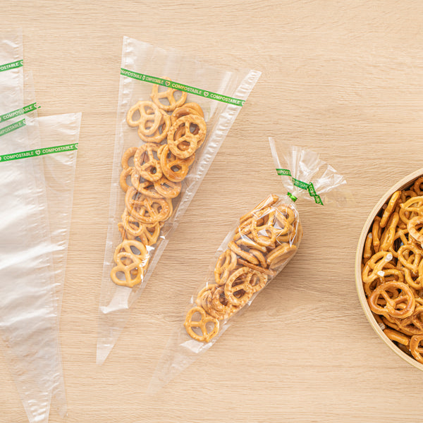 BASIC NATURE CLEAR PLASTIC CONE BAG - COMPOSTABLE, HIGH CLARITY